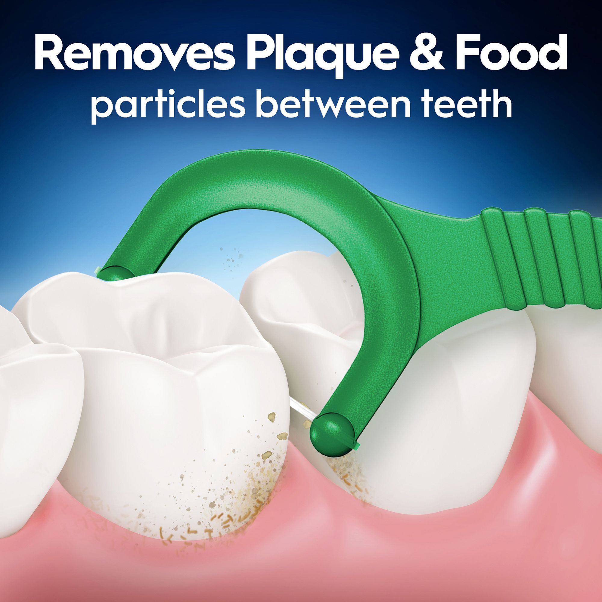 Oral-B Glide Scope Outlast Floss Picks combine the freshness of Scope flavor and the silky-smooth texture of Glide floss with the ease of a pick. The refreshing Scope Outlast flavor will leave your mouth feeling clean and refreshed. Glide Floss Picks slide up to 50% more easily in tight spaces* and effectively help remove plaque and food particles between teeth and just below the gumline. The floss pick has a comfortable hold and is designed to help stimulate and massage your gums to promote gum health. Oral-B is the #1 Dentist Recommended Floss Brand.*vs. a leading floss pick. Shred-resistant floss with a textured, flexible pick end. Slides up to 50% more easily in tight spaces* with the power of Oral-B Glide and the freshness of Scope Outlast flavor in the convenience of a floss pick. How to Use - Place tip of pick between teeth at the gumline. Use a gentle in and out motion to help remove plaque and food particles and stimulate gums. Rinse as necessary. Flossing Instructions: Hold handle, guide floss between teeth using a gentle back-and-forth motion. Move floss up and down against tooth to help remove plaque and food particles above and just below the gumline. Rinse floss as necessary (repeat for each tooth).
