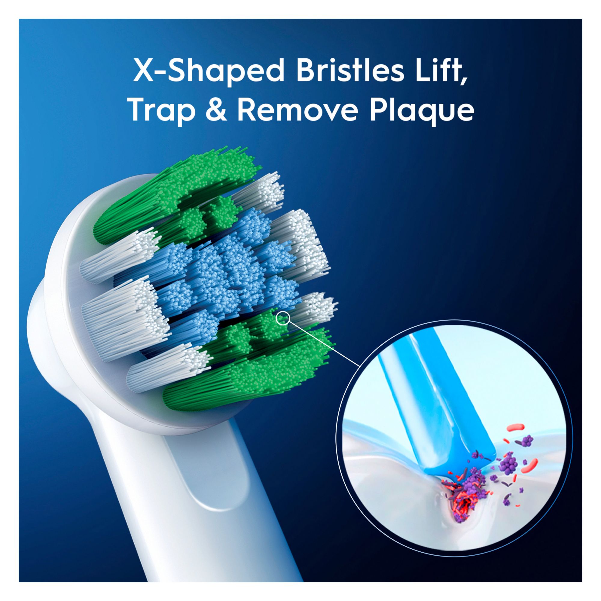 The Oral-B Precision Clean X-Filament Replacement Brush Heads advanced filament technology design was created to brush away plaque. This replacement brush head provides up to 400% more plaque removal along the gum line* to give you a complete clean you can feel. Oral-B's Precision Clean Replacement Brush Head with X-Filament technology is an ideal addition to your brushing routine by providing advanced cleaning. This dentist-inspired round brush head gives a tooth-by-tooth clean with specially engineered bristles to ensure optimal coverage on every tooth and remove plaque buildup stuck on the gumline. The replacement brush heads have indicator bristles that signal when it is time to replace your brush head. Round cleans better* and new cleans best. A new replacement brush head removes more plaque than a worn one. This replacement brush head pack includes three genuine Oral-B Precision Clean Replacement Brush Heads with X-Filament bristles. The Oral-B Precision Clean Replacement Brush Heads are compatible with all Oral-B rechargeable toothbrushes, except for Oral-B iO Toothbrushes. Oral-B recommends brushing with Crest Toothpaste for optimal results. Do not use on children under age 3. Replace brush head every three months or sooner if brush head becomes worn. Oral-B: Trust the brand dentists use the most worldwide. *Vs. a regular manual toothbrush. **Based on surveys of a representative worldwide sample of dentists carried out for P&G regularly.