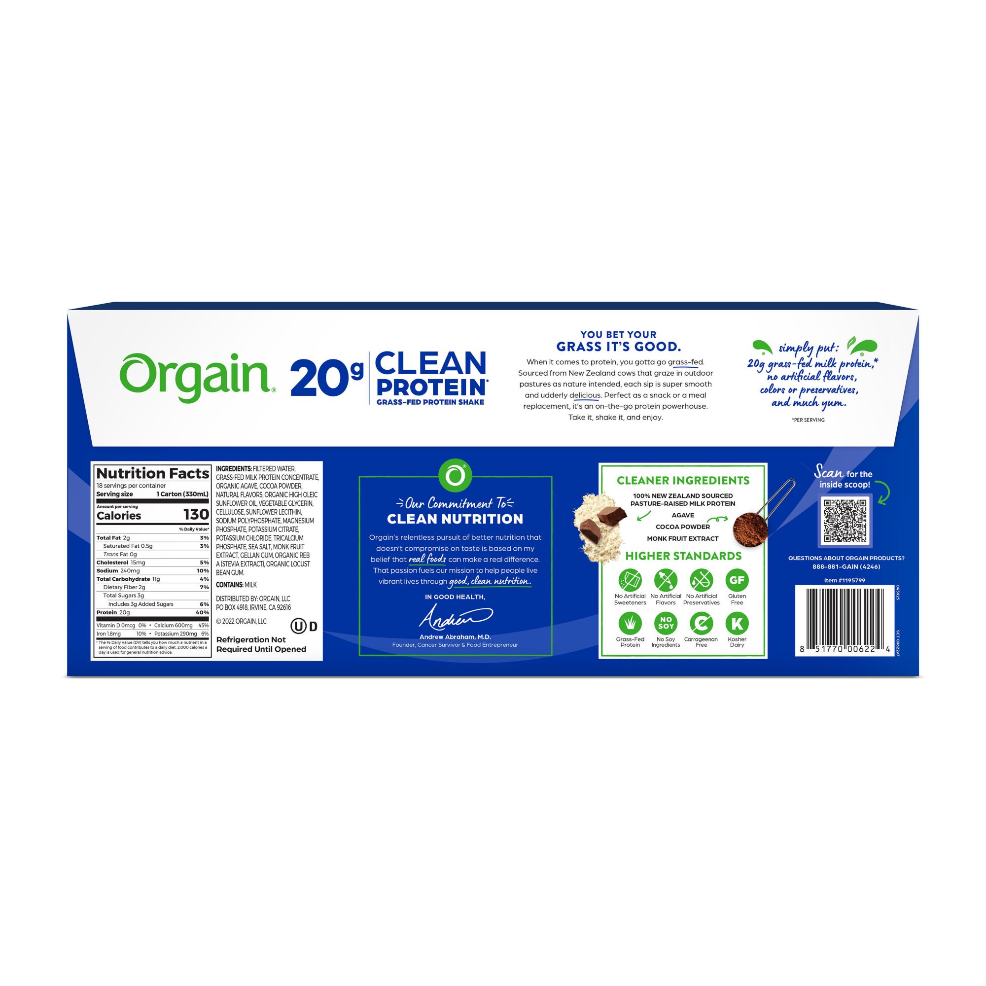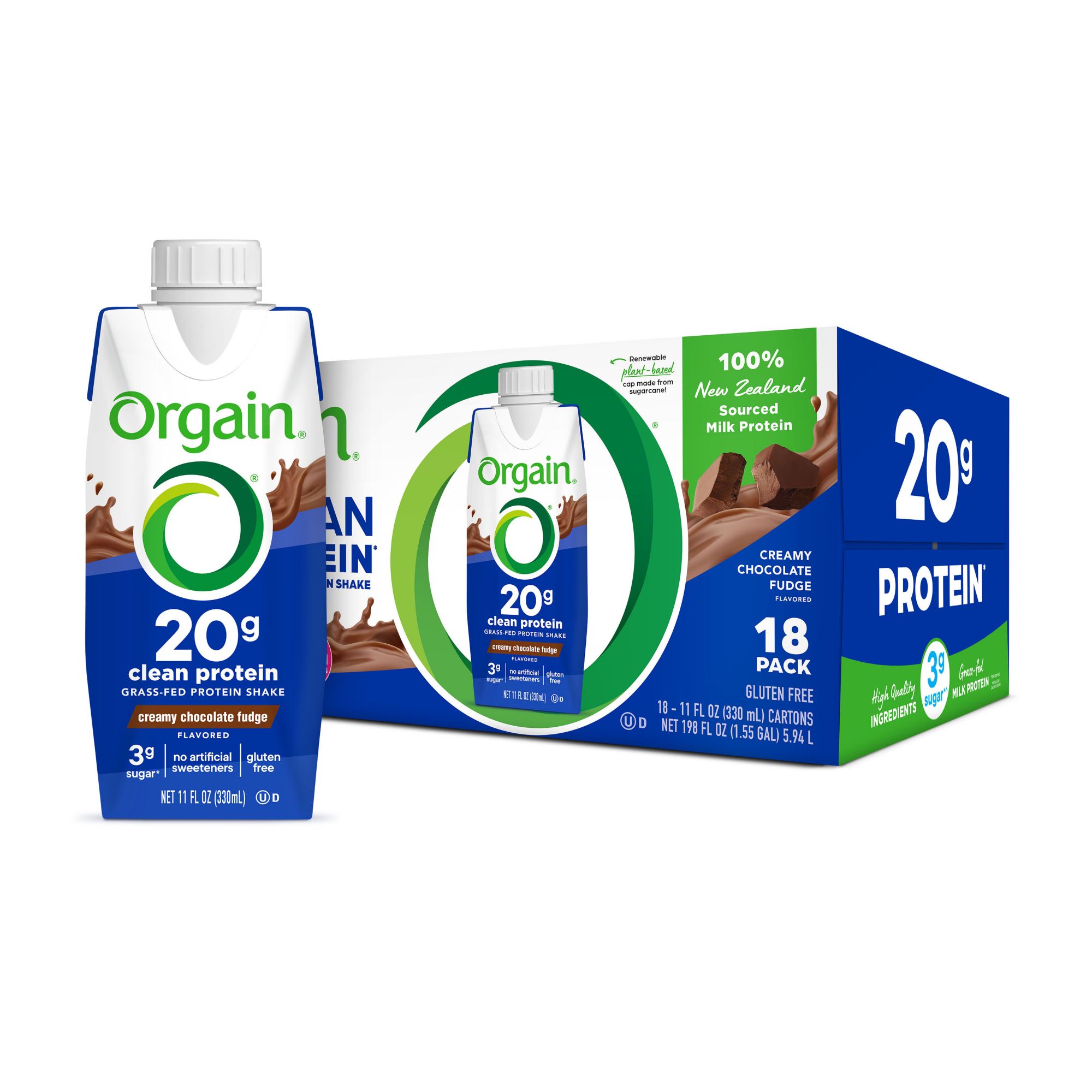 Orgain 20g Grass Fed Clean Protein Shake, Creamy Chocolate Fudge, 20g Protein, 18 ct./11 oz.