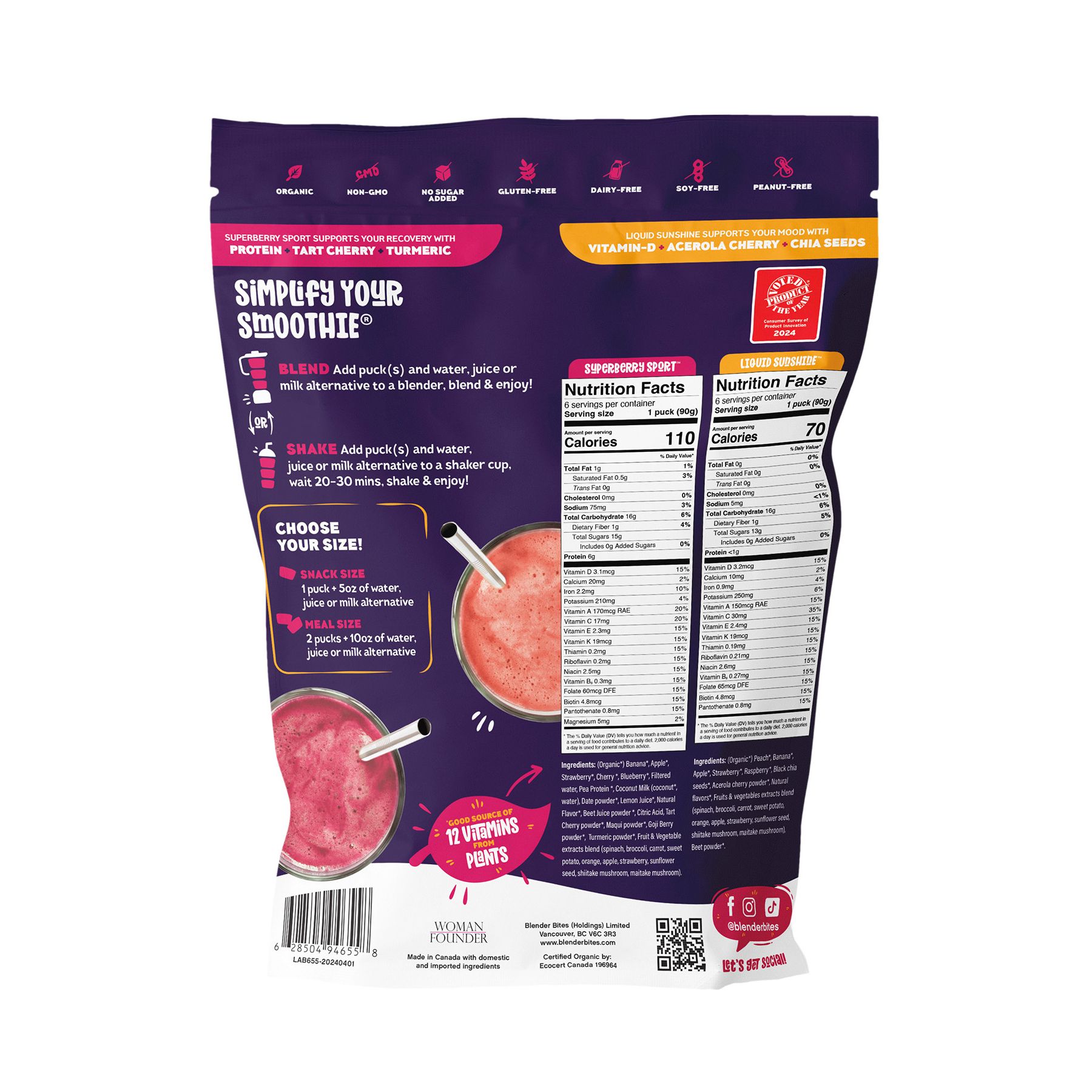 Organic Blender Bites Superberry Sport, Liquid Sunshine, 1-Step Smoothie, 12 pk.