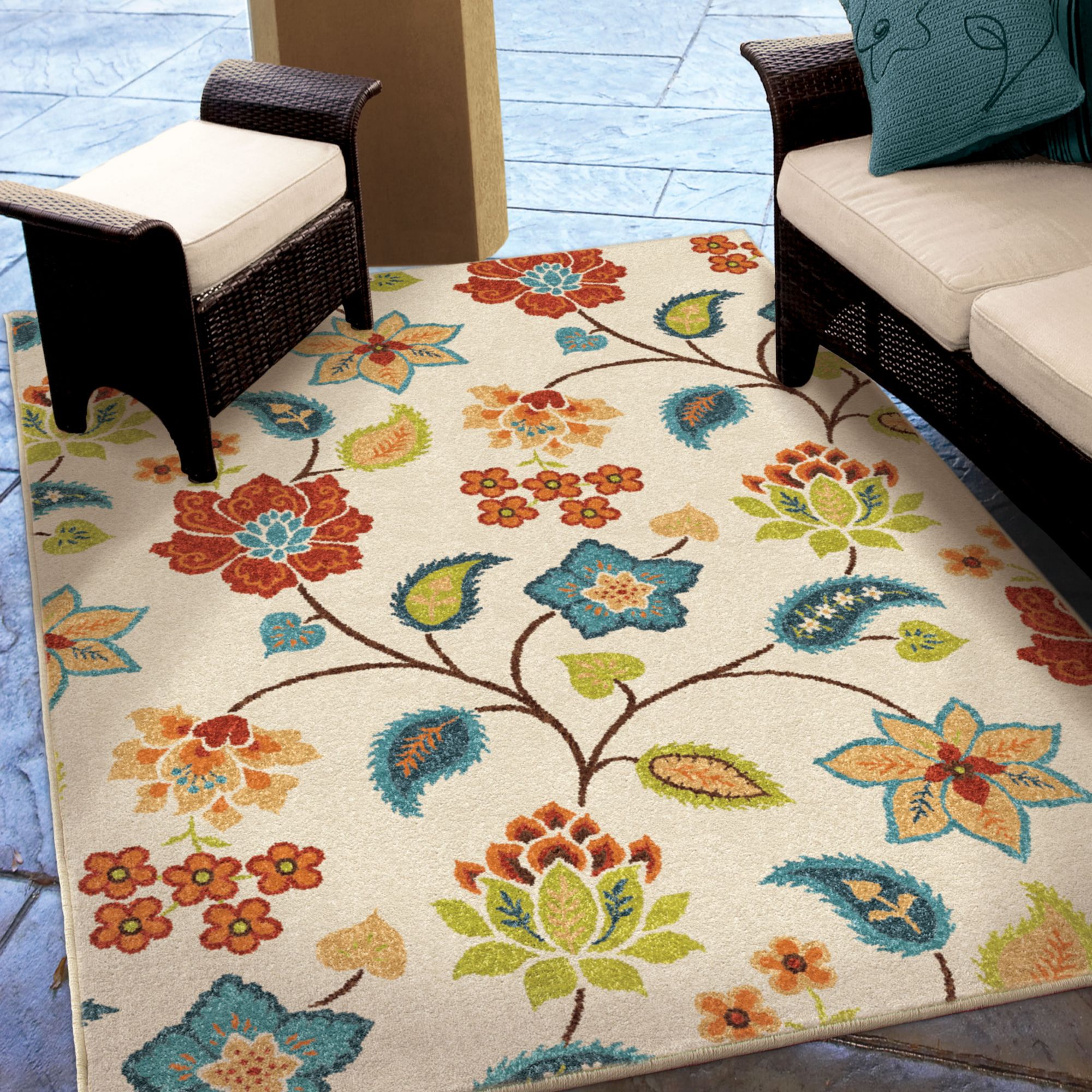 Orian Rugs Indoor/Outdoor Garden Chintz Area 5'2" x 7'6" Rug, Ivory