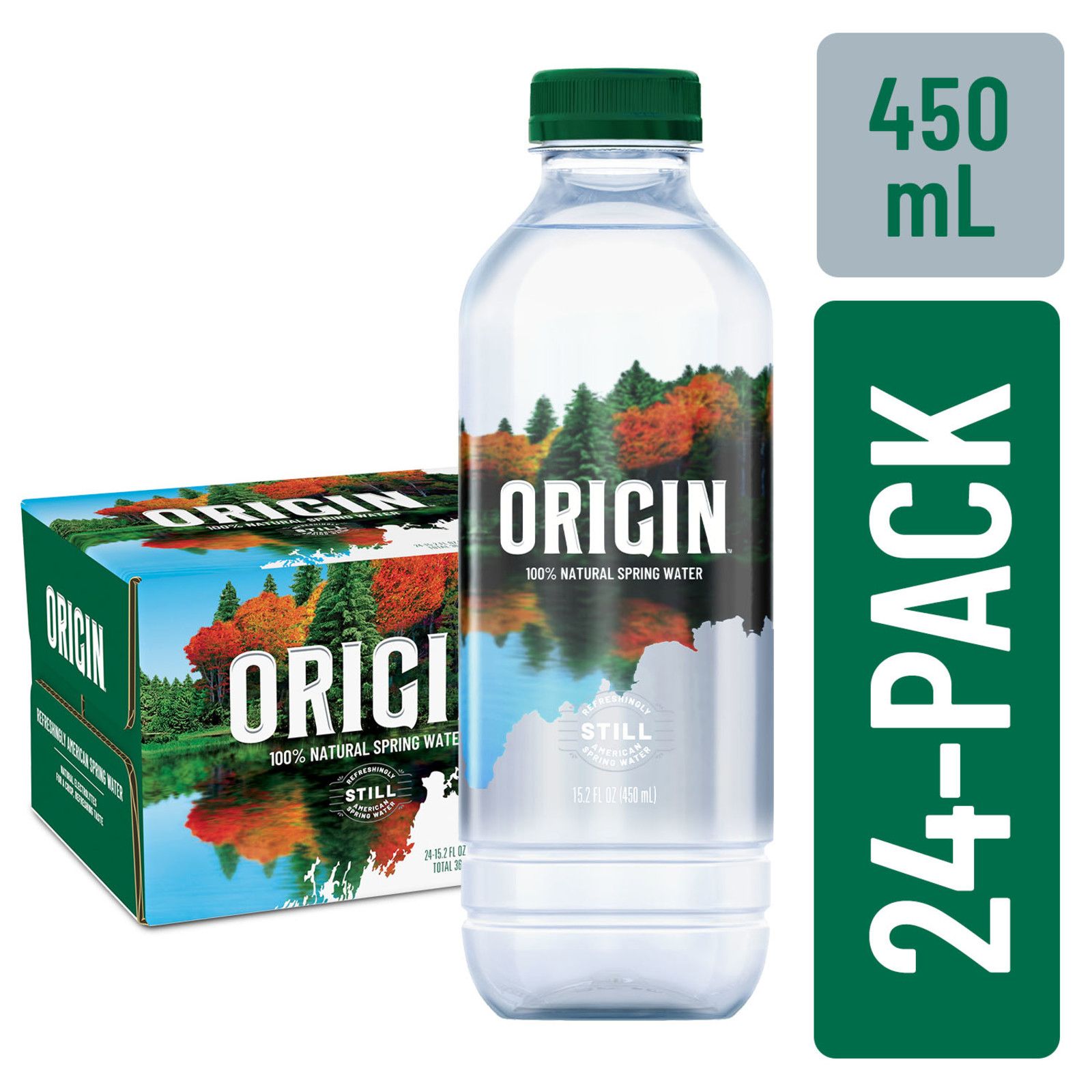 Origin, 100% Natural Spring Water, Recycled Plastic Bottle Carton, 24 ct./450mL