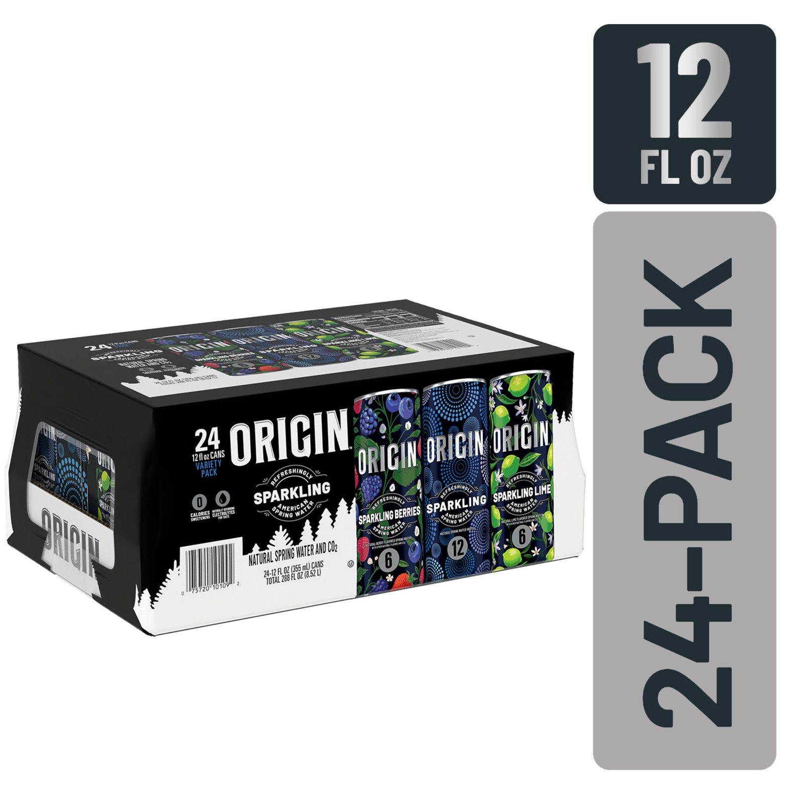 Unlike many premium sparkling water brands, Origin was born in America. Origin sparkling water is 100% Natural Spring Water, with added CO2 and natural flavors, for a refreshing taste. Origin shares the deeply held values of the land they come from and in their American origins. Origin made sure to get the sparkling just right, refining their carbonation process to create the perfect balance of fine bubbles. The effervescent tingle on the tongue provides an exceptional drinking experience for any occasion. This pack contains 6 cans of Sparkling Berries Flavor, 6 cans of Sparkling Lime Flavor, and 12 cans of Sparkling Unflavored.
