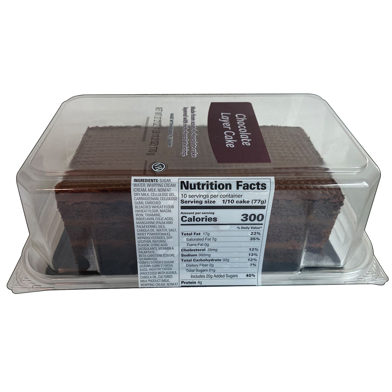 Rich chocolate flavor Made from scratch Three delectable layers Creamy chocolate icing Includes 27.2 oz. of bar cake