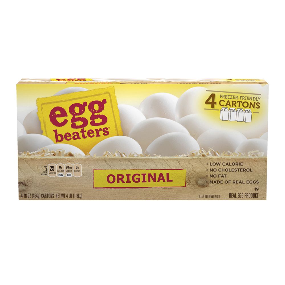 All-natural egg whites are a nutritious alternative to whole eggs 25 calories, 0g of fat and no cholesterol Excellent source of protein, vitamins and minerals Certified kosher Includes four 16 oz. cartons of Original Egg Beaters