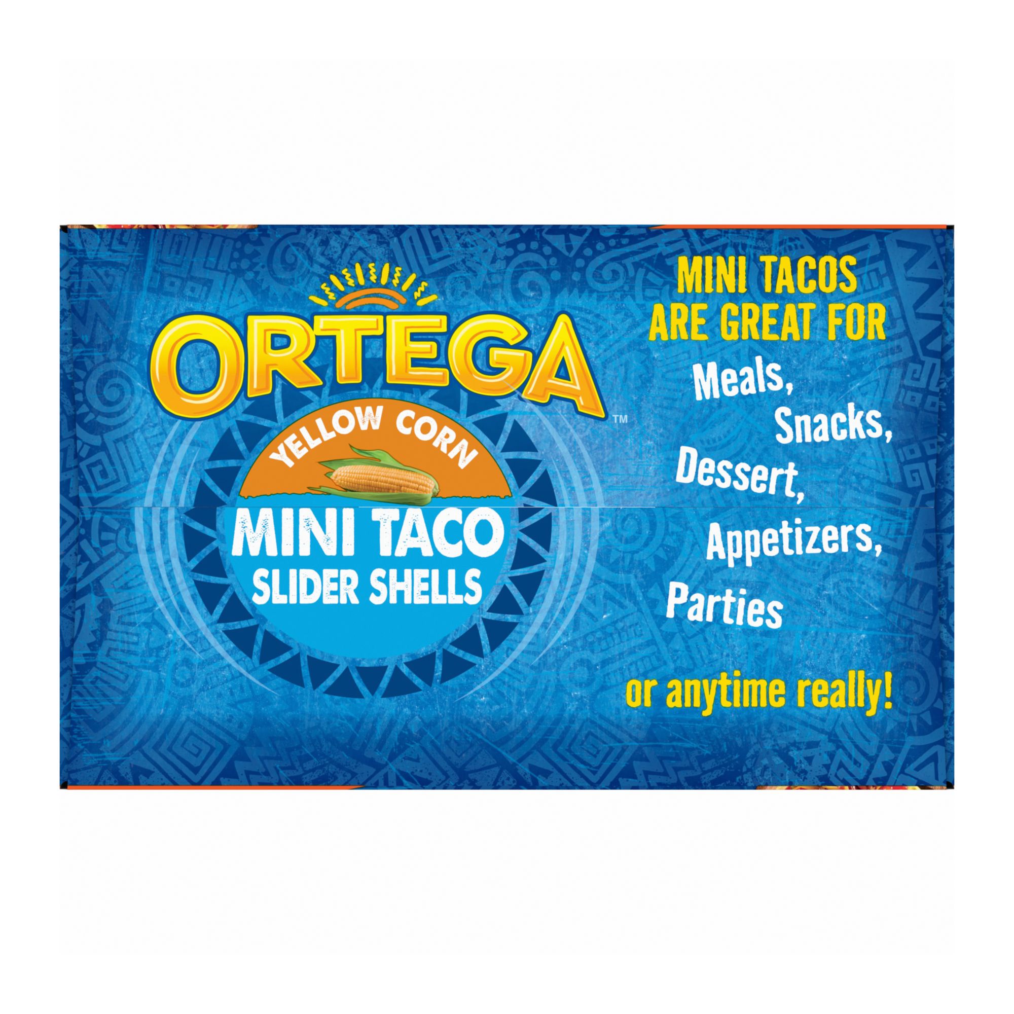 Ortega Mini Taco Shells offer the great taste and texture of mini yellow corn shells to help you prepare fun and tasty Mexican meals. Fill these crunchy and crispy taco shells with your favorite meat mixture, lettuce, tomato, cheese and taco sauce to enjoy delicious mini tacos with family and friends. Conveniently sized for kids and offering portion control for adults, these kosher, hard taco shells are a flavorful choice for people with dietary restrictions. This taco shell kit contains 54 small taco shells that come ready to eat out of the box. Ortega hopes to help you create fond memories of great meals shared with your family.