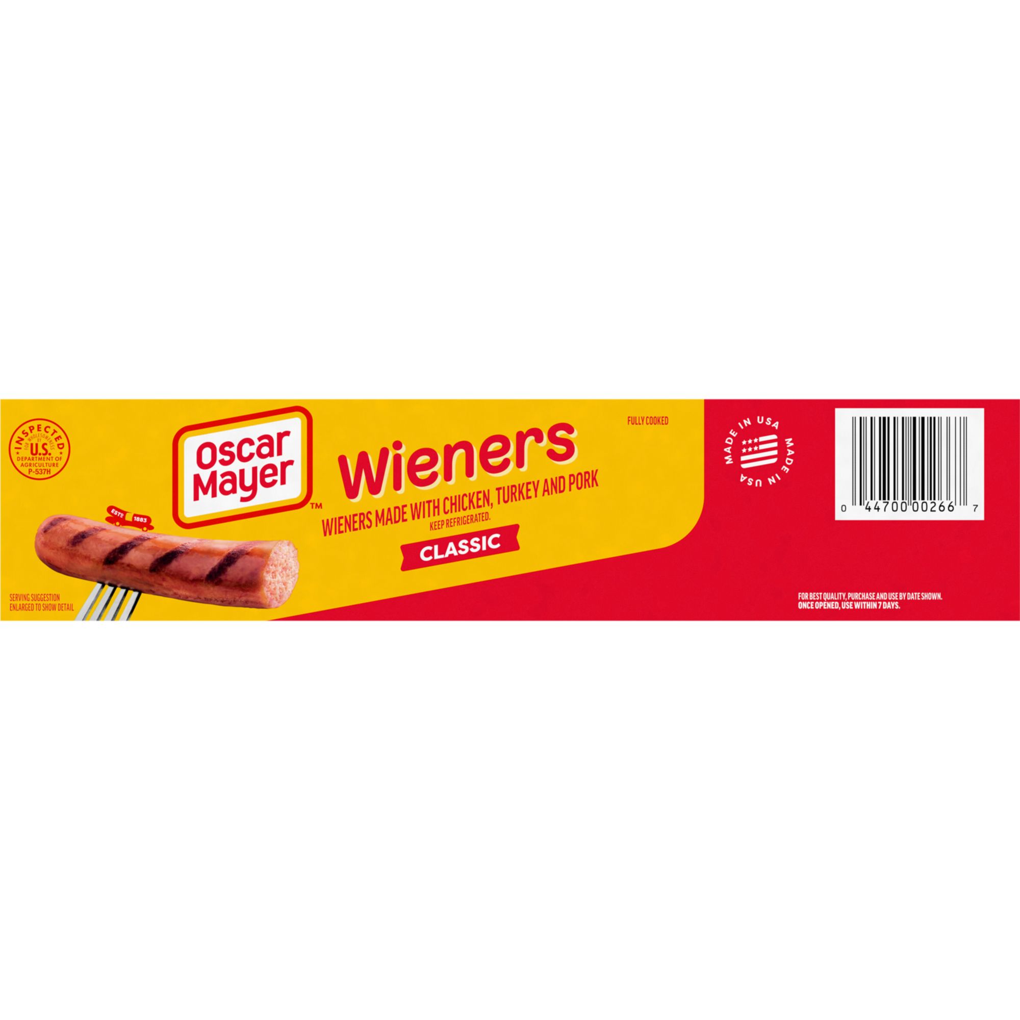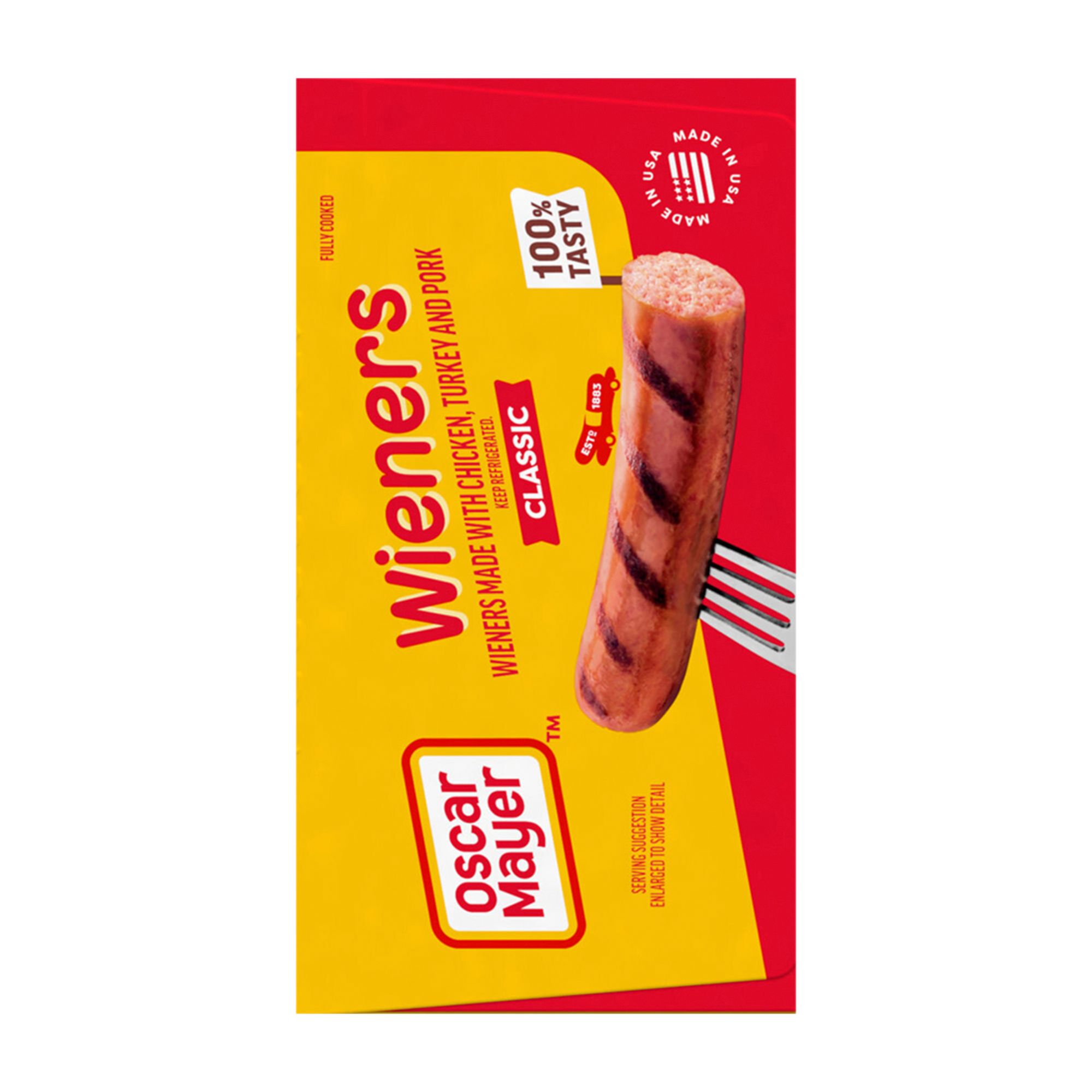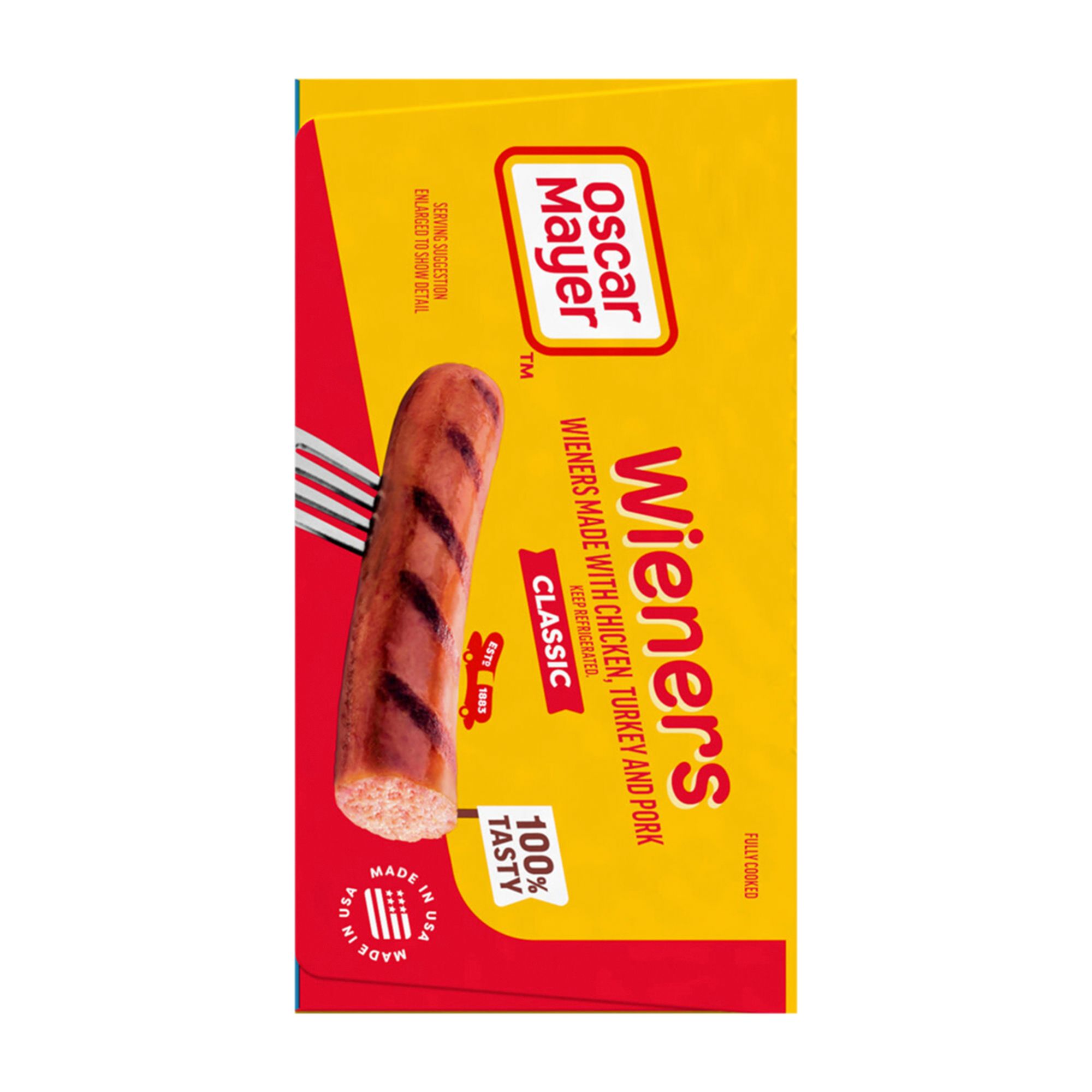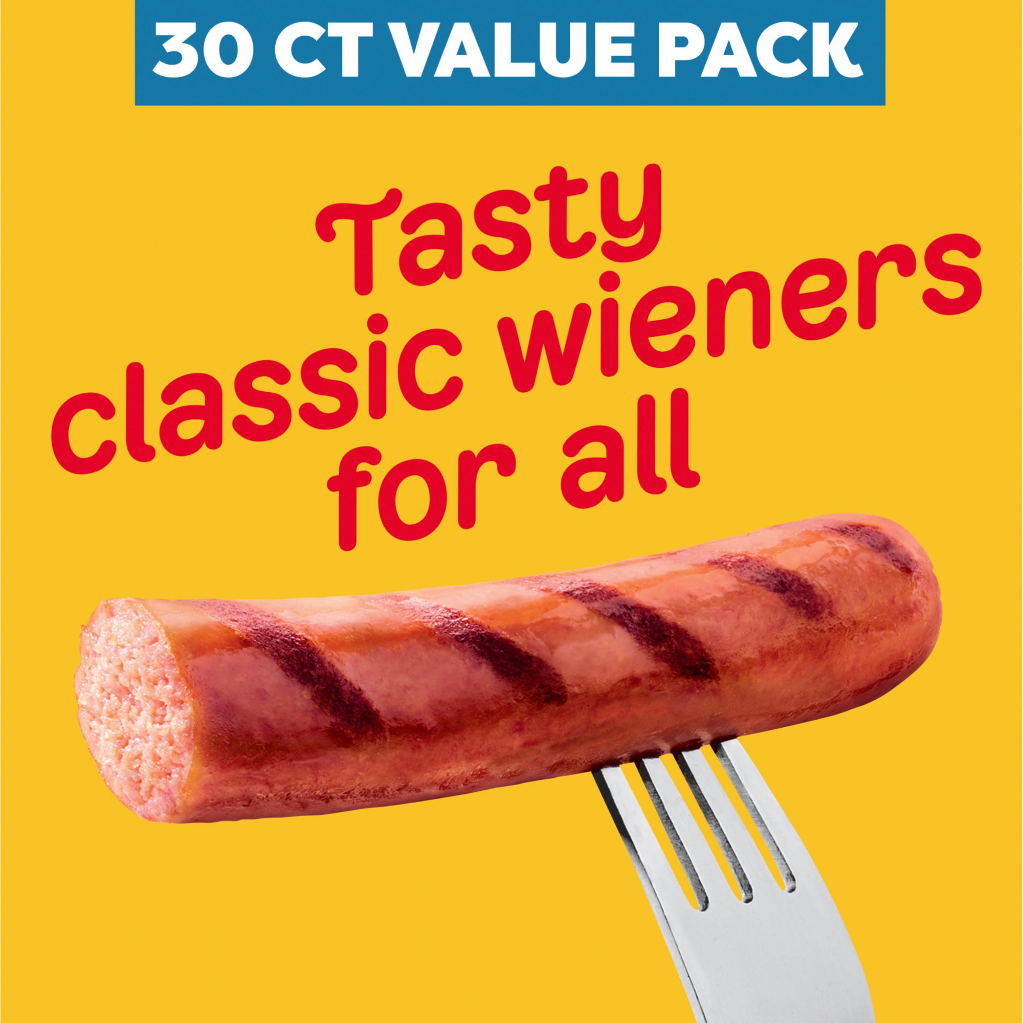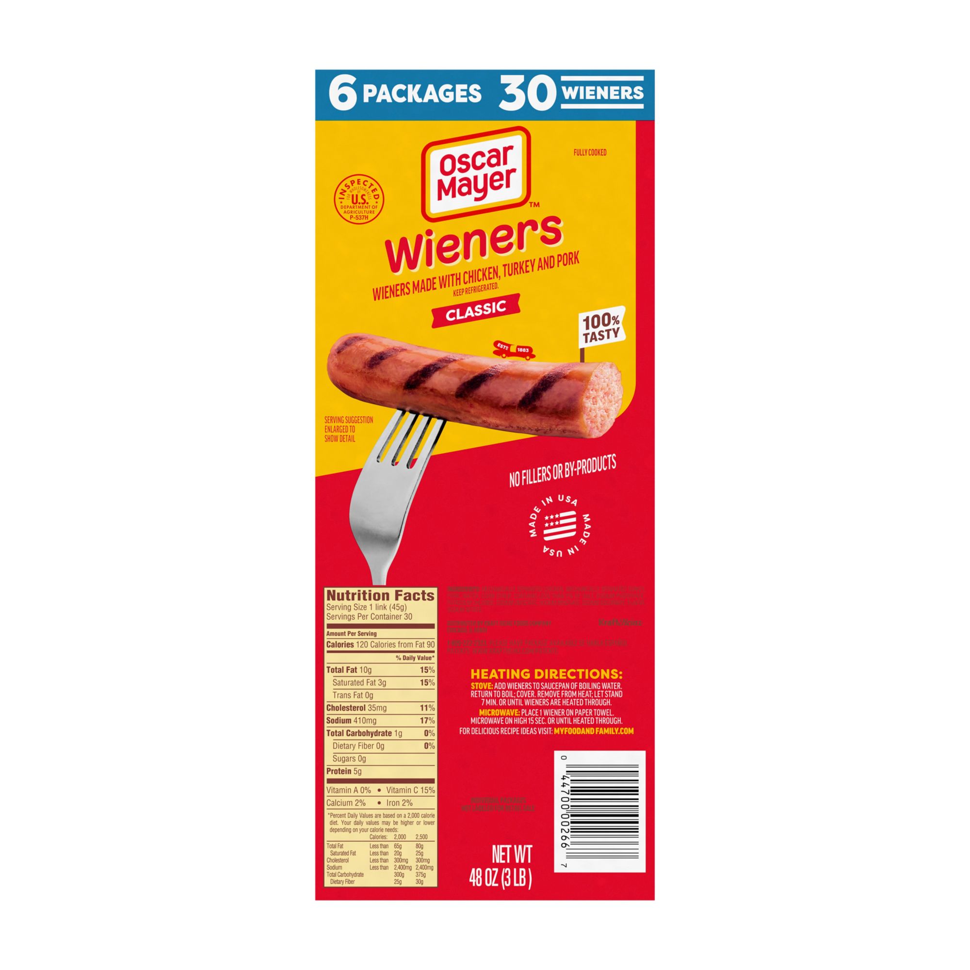 Grill up a winner. Oscar Mayer Classic Wieners Hot Dogs are made with no fillers or by-products so you can enjoy the great taste and quality you expect. Grill these wieners for a family BBQ, roast over a campfire or cook in the kitchen for a quick and easy meal. Top your hot dog with ketchup and mustard, or try regional favorites like chili or sauerkraut. Each 30-count, 48-ounce box of hot dogs comes with 6 packages with an EZ peel tape. Keep refrigerated until ready to prepare.