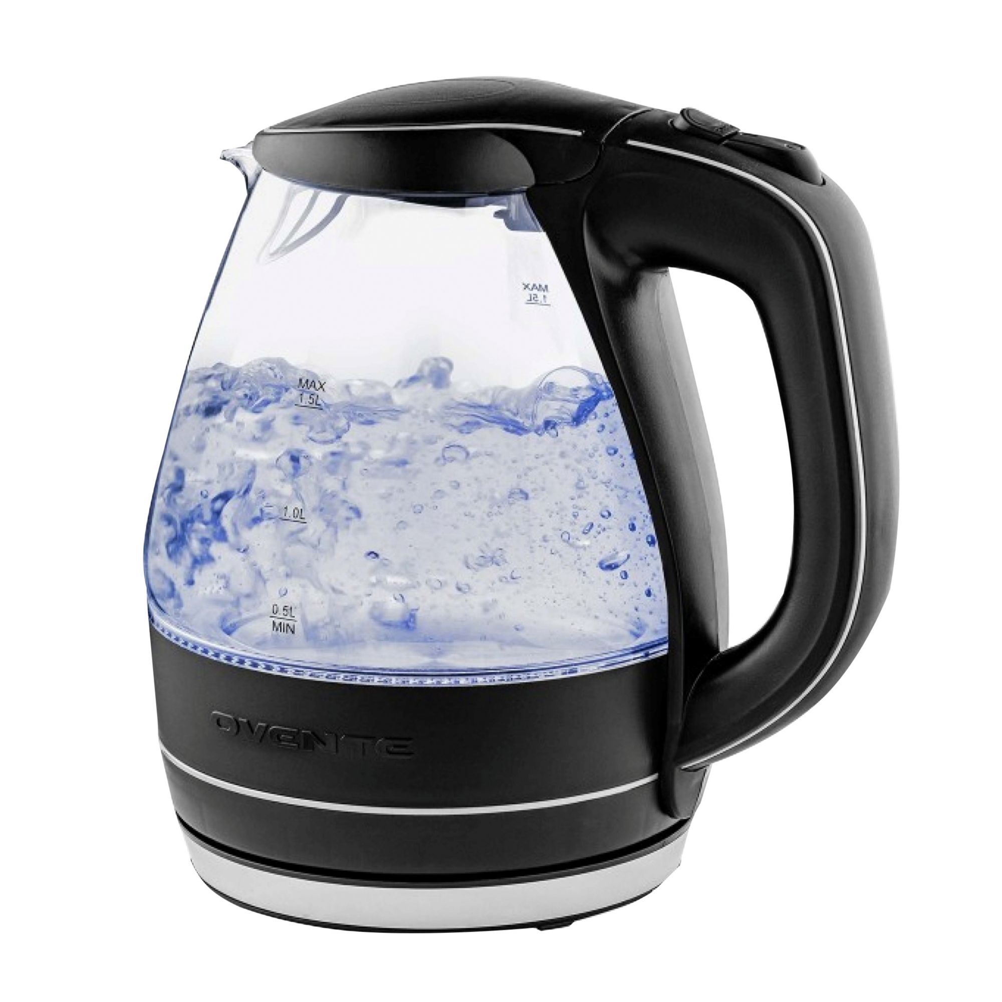 Ovente 1.5L Glass Electric Kettle with LED Light - Black