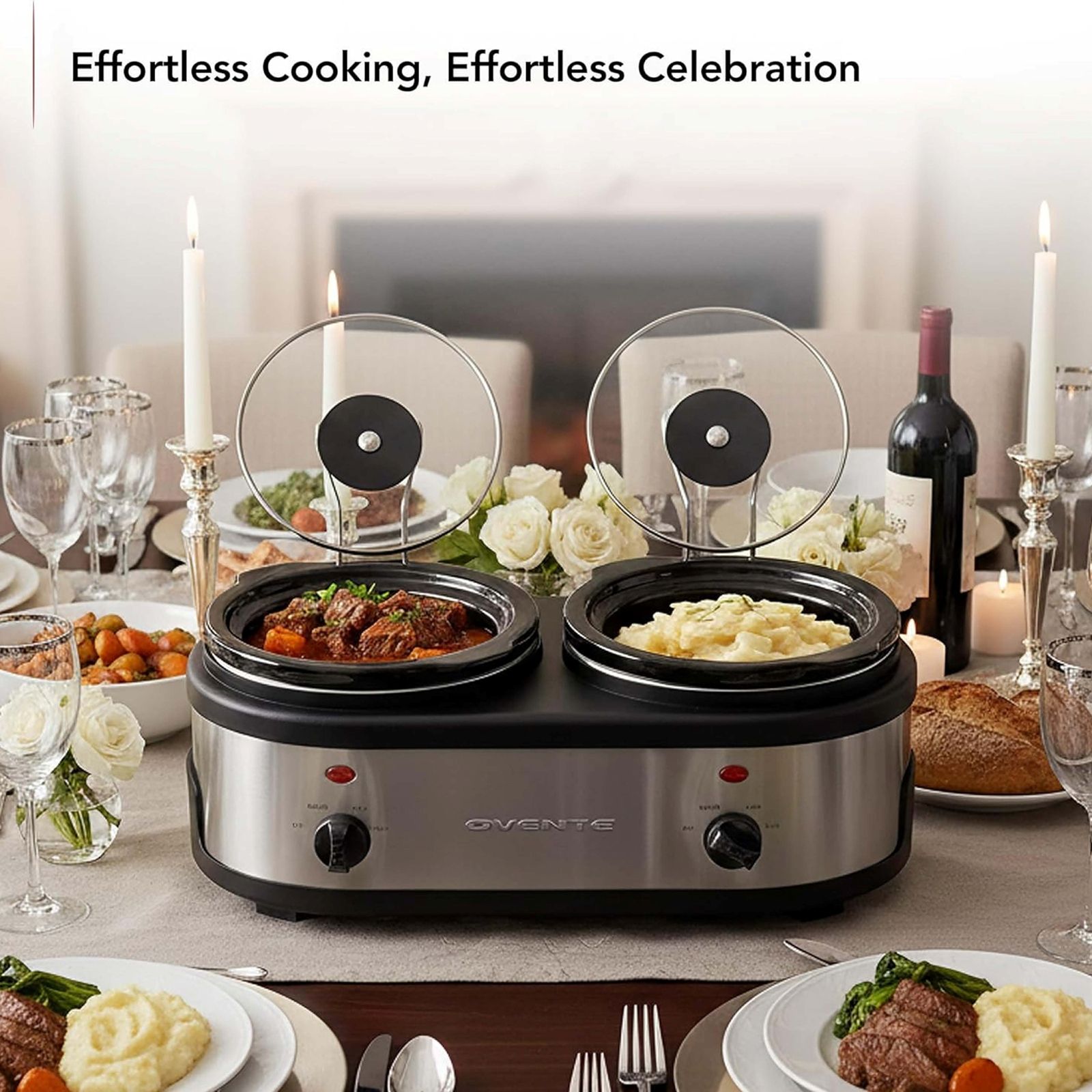 Ovente Dual Buffet Slow Cooker & Serving Station