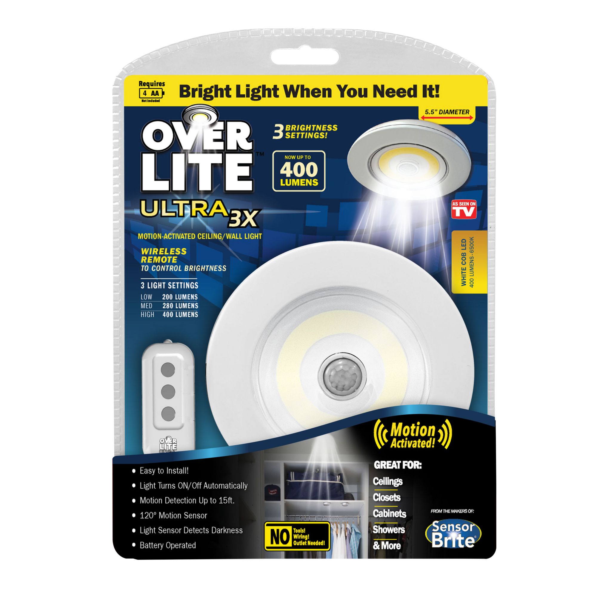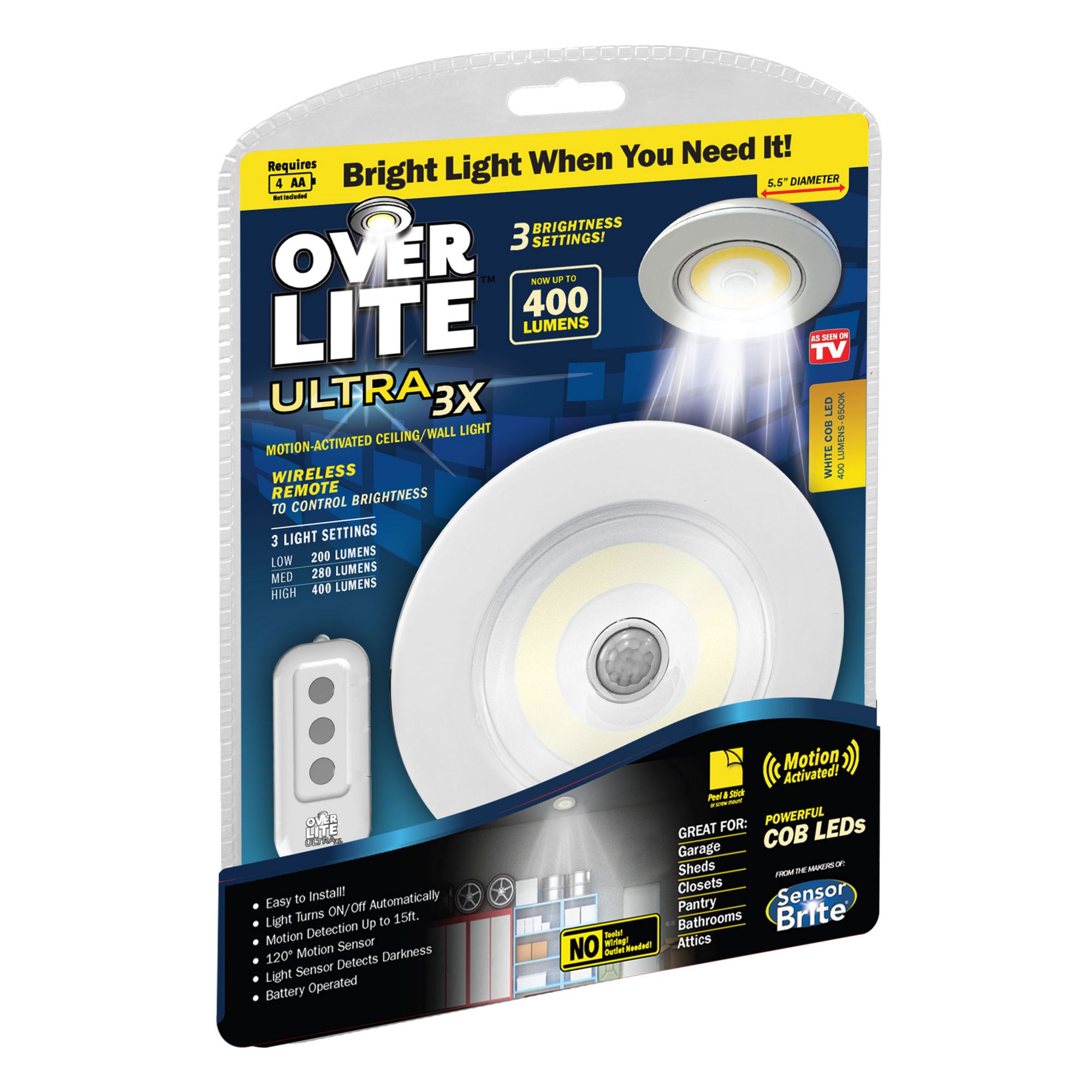 Includes Over Lite Ultra 3X motion activated wall/ceiling light