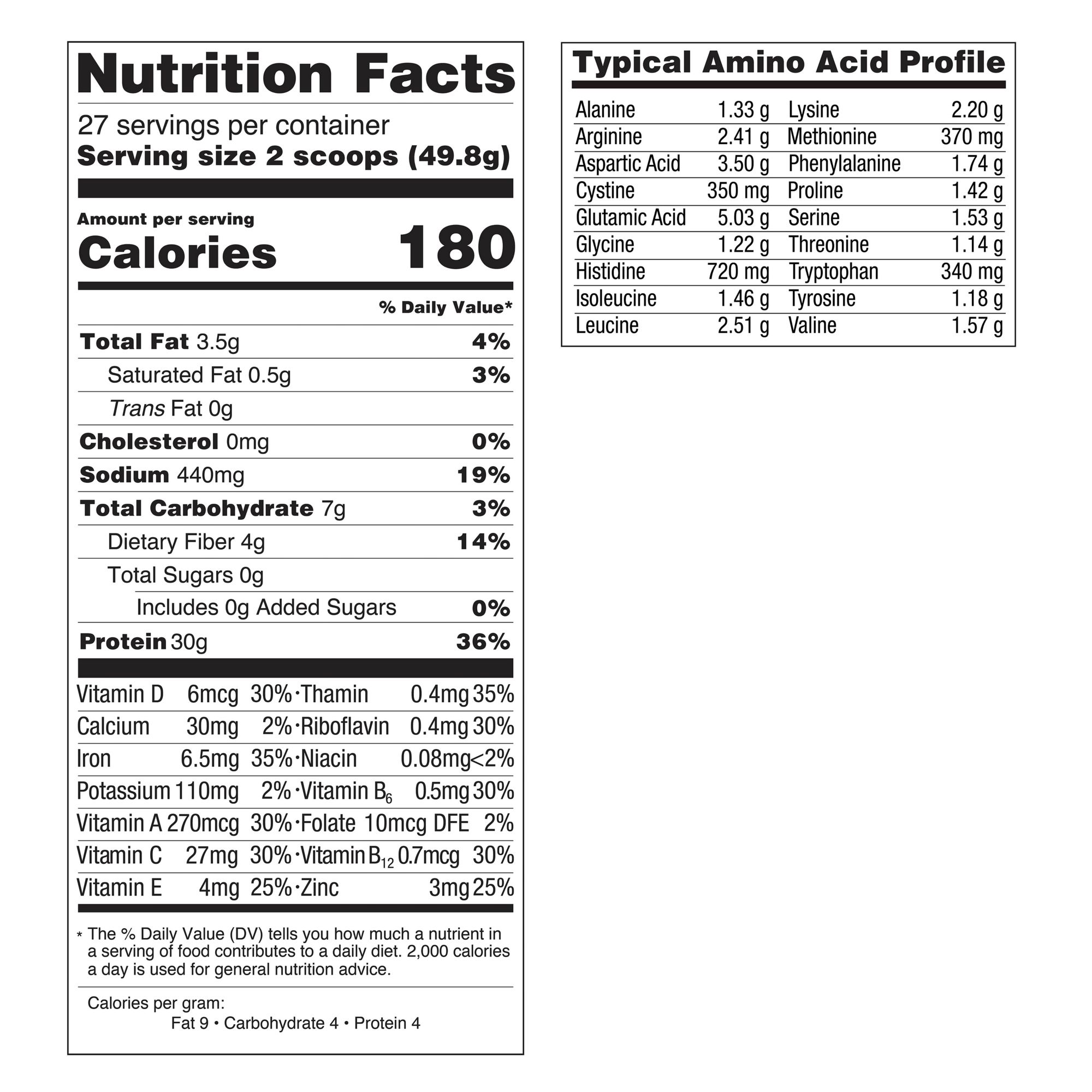 30g dairy-free protein: Plant protein made from peas and pumpkin to provide nutrients for muscle health support with 30g protein per serving.