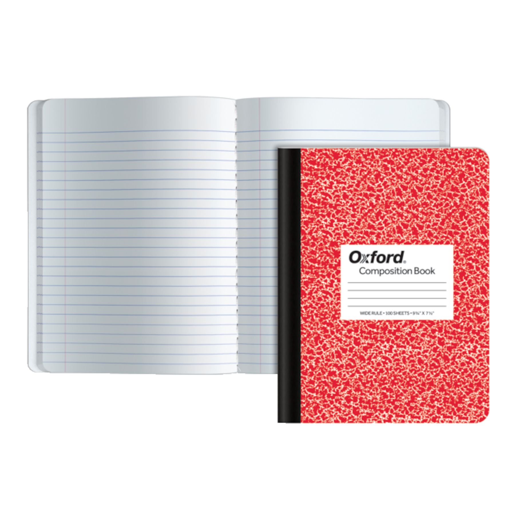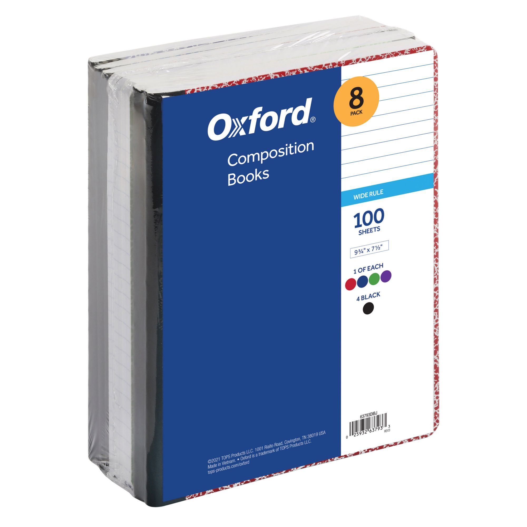 Oxford Composition Books feature a classic hardcover format ideal for journaling, lab assignments, note taking or any class requiring notebook submissions. The secure center-sewn binding assures your pages stay intact. Classic assorted marble covers have an area for name and class and handy conversion charts inside. Wide ruled pages give lots of space for entries. Packed in an 8 count to minimize purchasing.