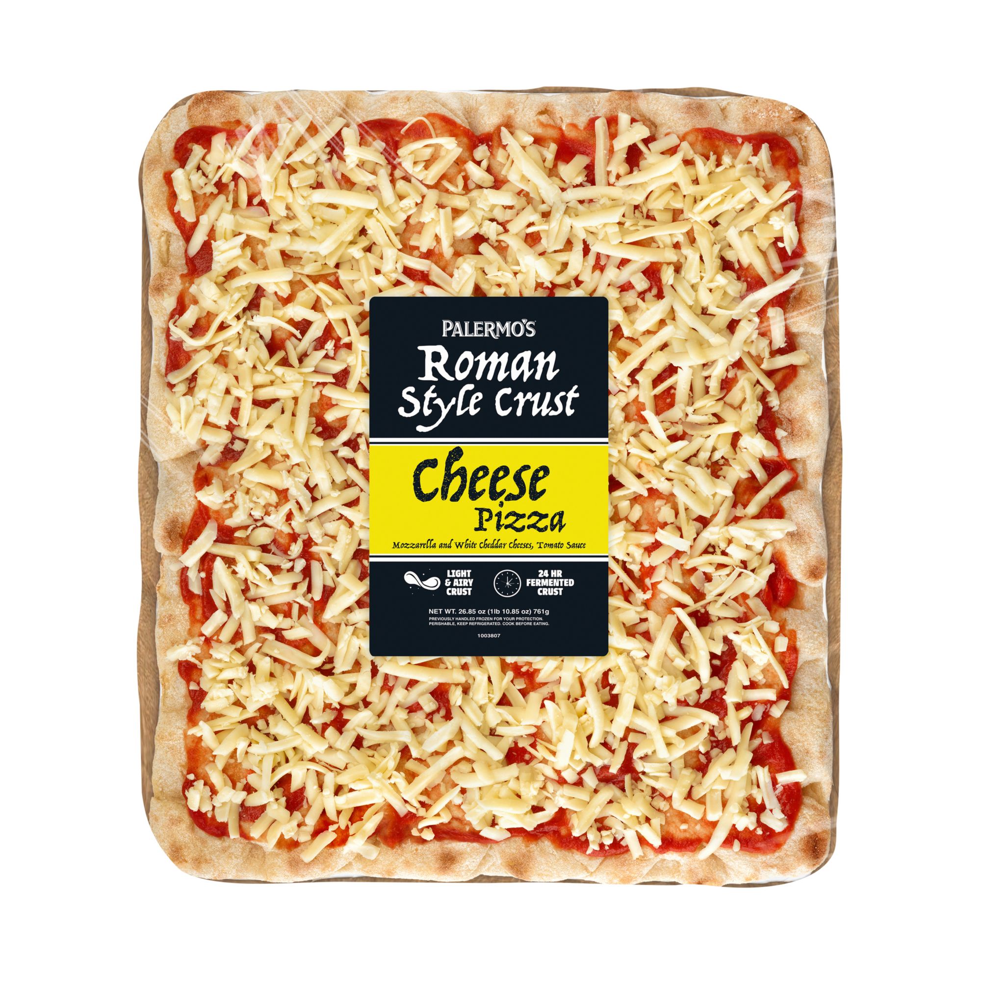 Ingredients: Crust (Wheat Flour, Water, Rice Flour, Soy Flour, Rice Semolina, Sourdough Starter, Extra Virgin Olive Oil, Salt, Yeast), Sauce (Water, Tomato Concentrate, Seasoning [Sugar, Salt, Spices, Onion Powder, Garlic Powder]), Low Moisture Part Skim Mozzarella Cheese (Pasteurized Part Skim Milk, Cheese Cultures, Salt, Enzymes), White Cheddar Cheese (Pasteurized Milk, Cheese Cultures, Salt, Enzymes).