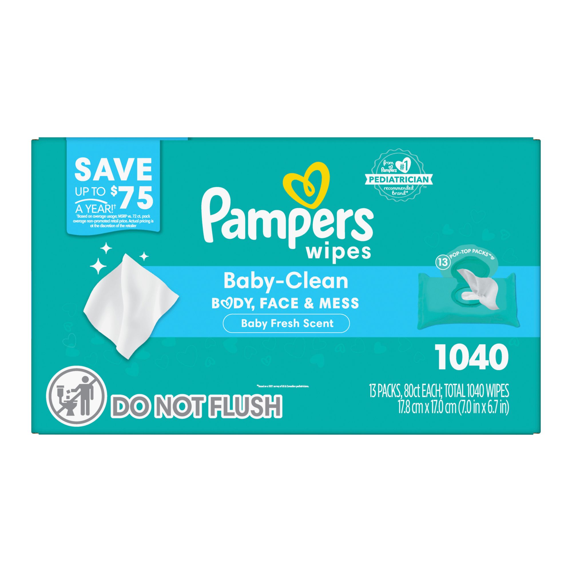 Pampers Baby Clean Wipes with Pop-Top, 13 pk./1040 ct. - Fresh Scent