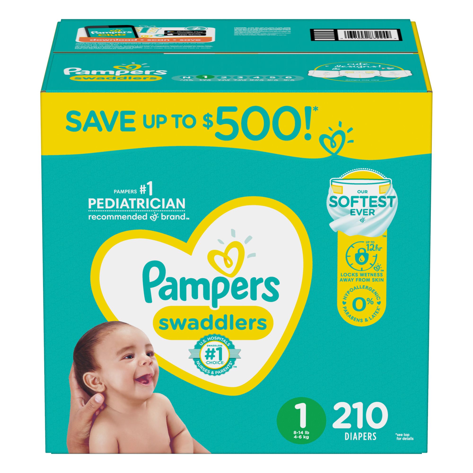 THE #1 BRAND*: Pampers are the #1 Brand*. For Sleep. LEAKGUARD PROTECTION: Designed with an All-Around LeakGuard, these disposable diapers offer up to 100% blowout and leak protection ULTRA ABSORBENT: Pampers Swaddlers help keep your baby 3X drier** with an absorbent liner that locks away wetness SAFETY PROMISE: Hypoallergenic & dermatologically accredited by the Skin Health Alliance, these baby diapers are free from elemental chlorine, parabens, and latex (no natural rubber) for gentle care SKIN HEALTH: Superior skin protection*** by Pampers diapers protect against the main causes of diaper rash by keeping skin drier, reducing friction, balancing pH & pulling mess away WETNESS INDICATOR: These baby diapers feature a wide wetness indicator that changes from yellow to blue, so you know when it's time for a change PEDIATRICIAN-RECOMENDED: Trusted protection from Pampers, the #1 Pediatrician Recommended Brand**** Product and packaging may vary