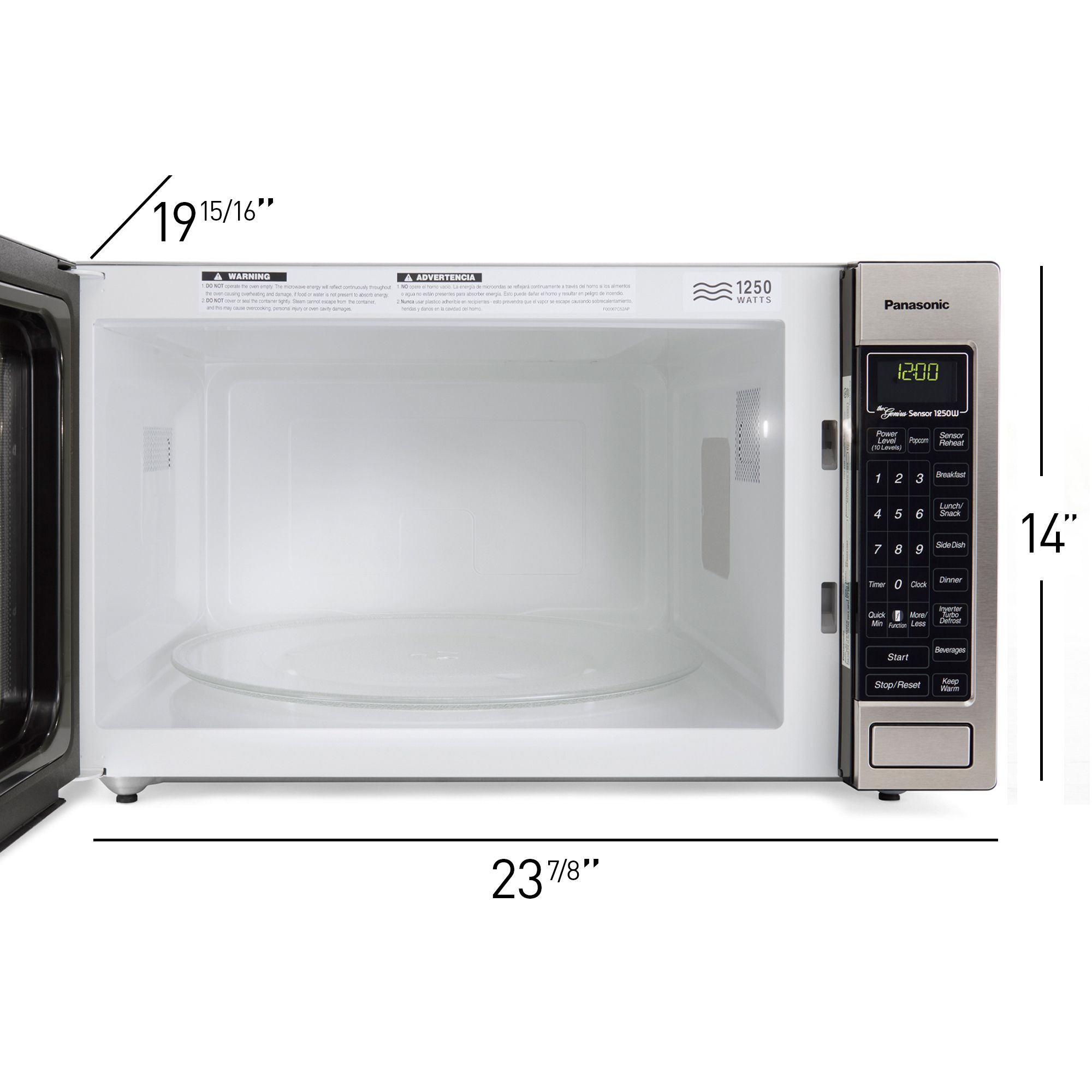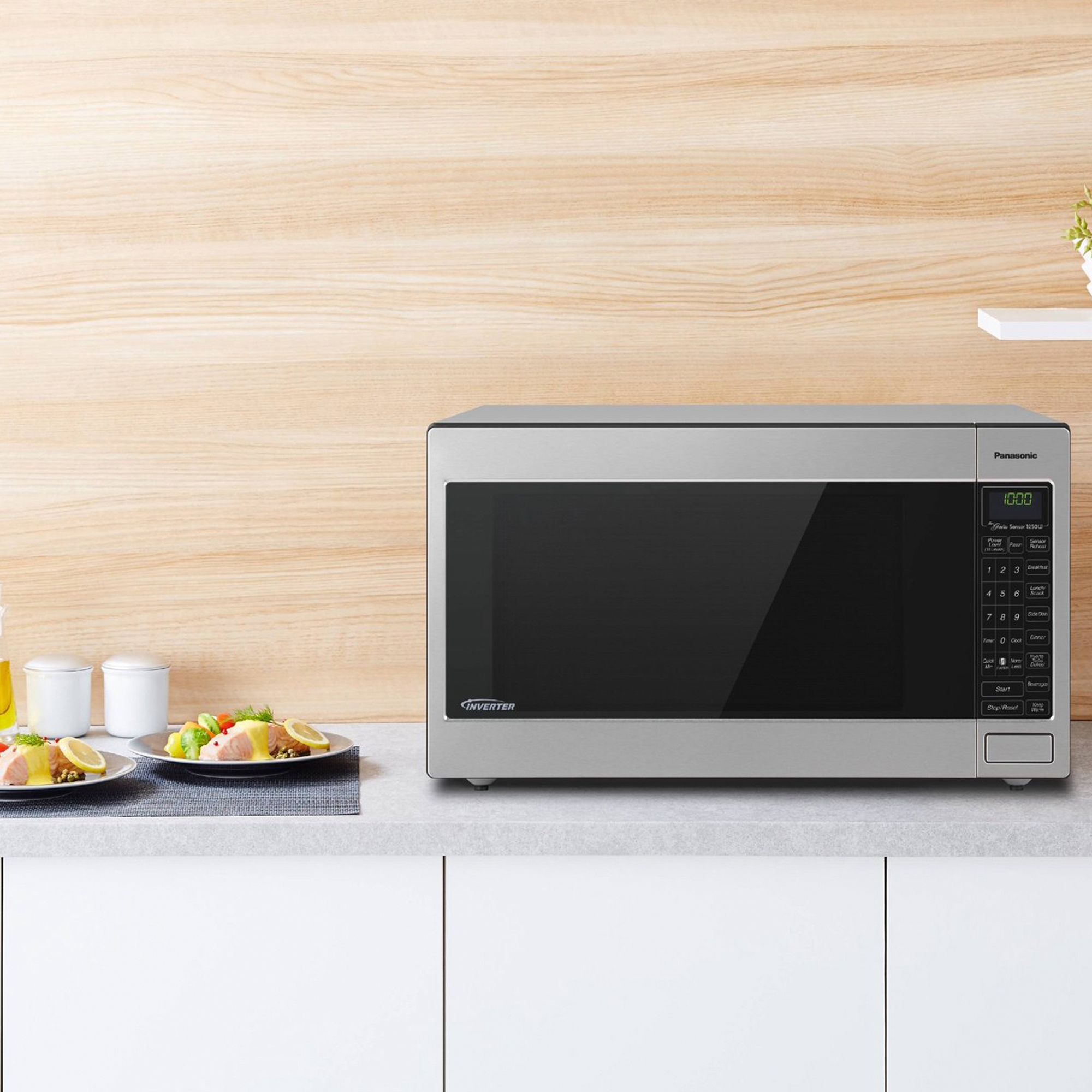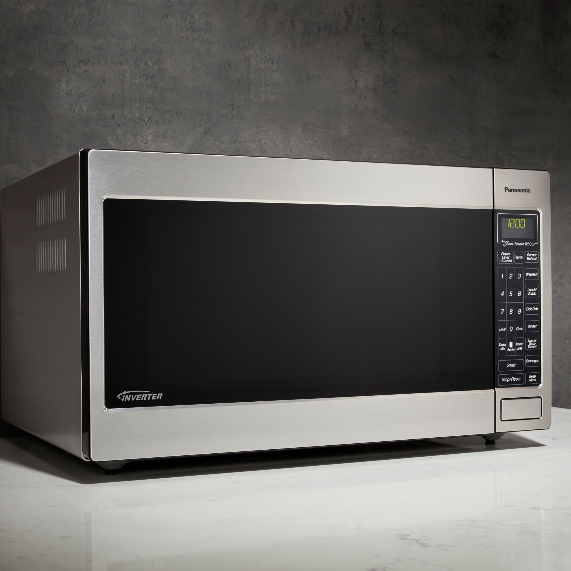 The Panasonic NN-T945SF 2.2 cu. ft. Countertop Microwave Oven features everything you need for flawless meal preparation. It has 1,250 watts of cooking power and 10 power levels, with one-touch Sensor Cooking for easy cooking and reheating. Inverter Technology delivers a steady stream of power to evenly cook even delicate foods with ease. This Panasonic microwave oven has easy-to-use controls, including keep warm, popcorn, quick minute and a four-digit display. It also includes Inverter Turbo Defrost function, which more quickly thaws foods and a Keep Warm function which keeps your food warm until you’re ready to serve. A spacious interior holds a glass turntable. On the exterior, a sleek, stainless steel face complements any kitchen décor. For a built-in look, choose a compatible Panasonic Microwave Trim kit (sold separately).