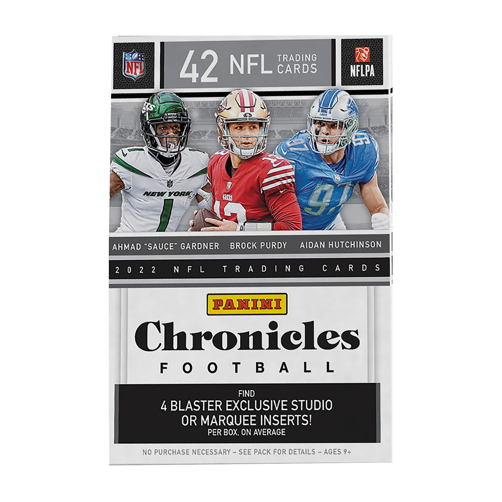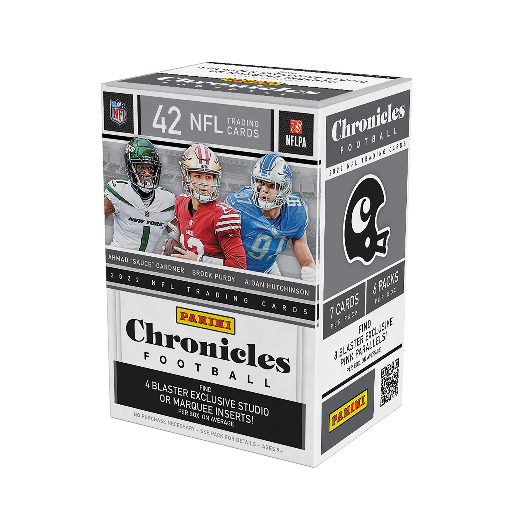 Includes seven cards per pack, six packs per blaster box, a total of 42 Panini 2022 Chronicles Football Cards