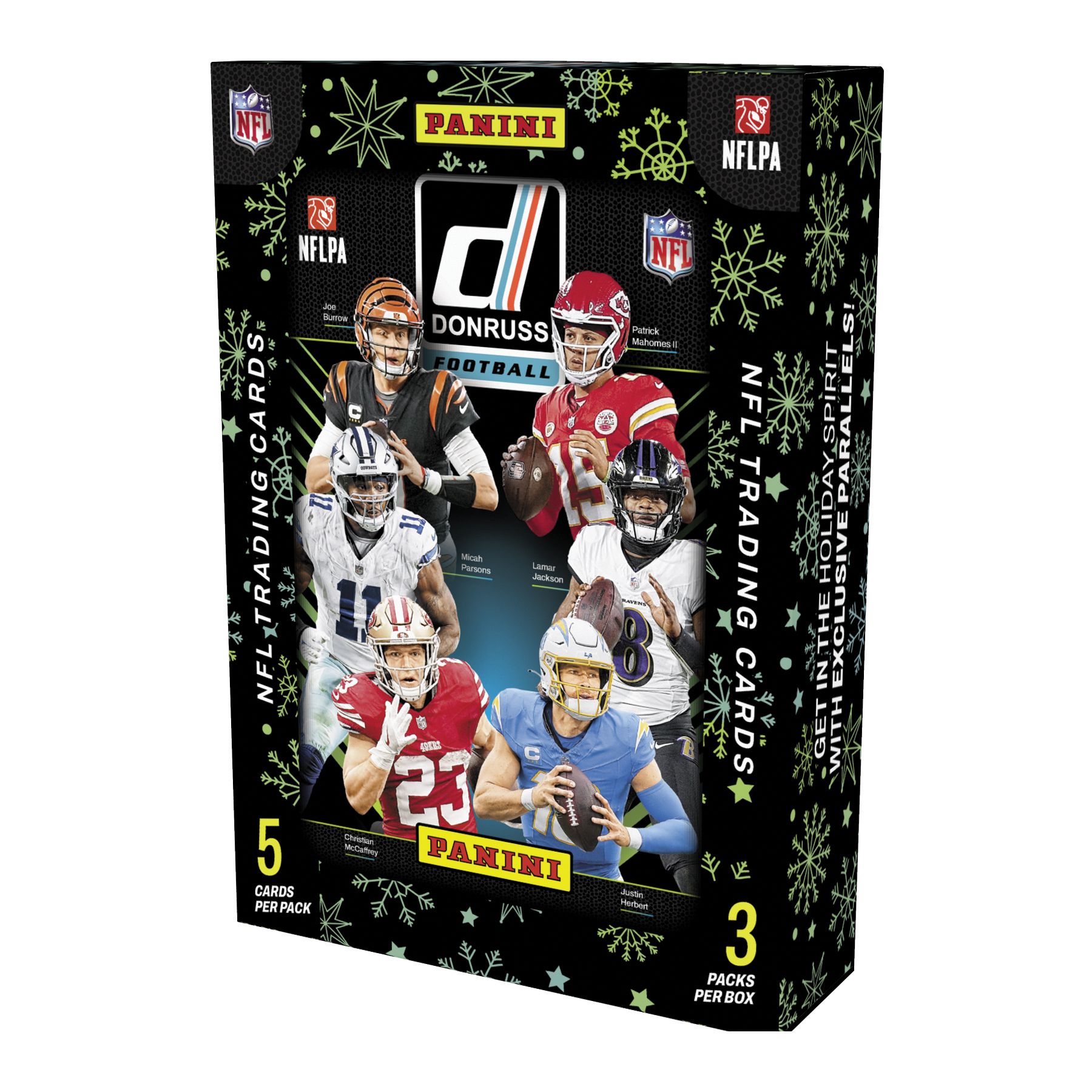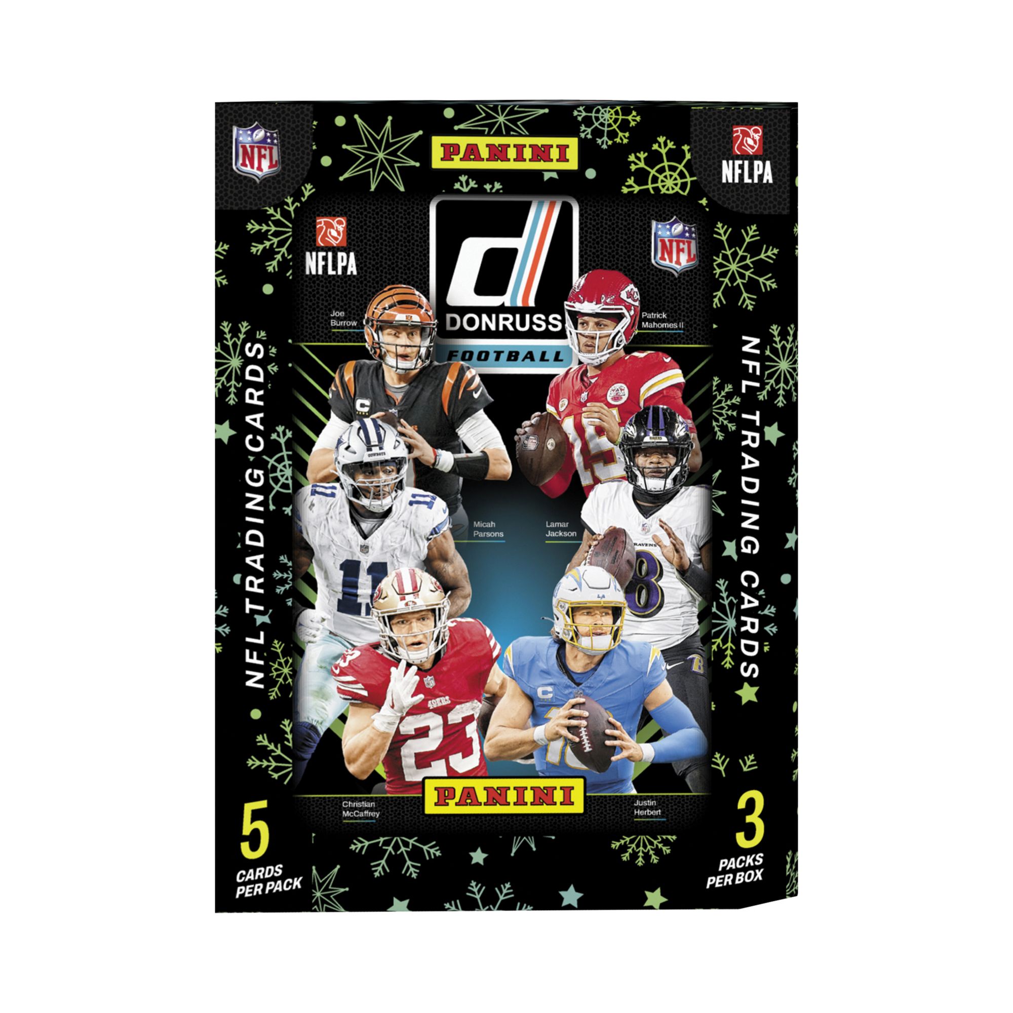 Panini presents the Donruss Football Stocking Stuffer Tin. Featuring the iconic Donruss Football franchise and an outstanding 2024 Rookie Draft Class. Limted production run. Content is subject to change without notice. Chase a robust array of inserts.