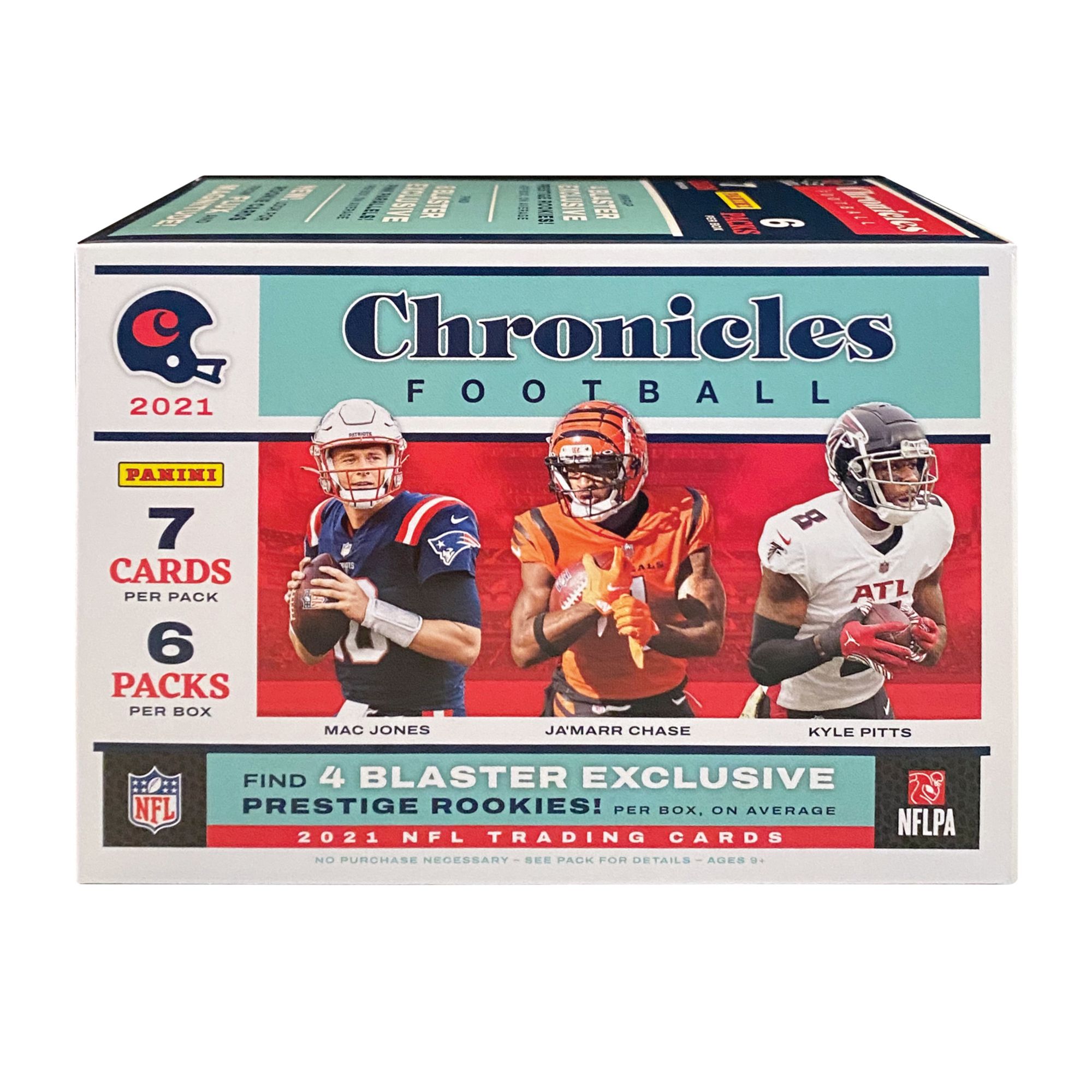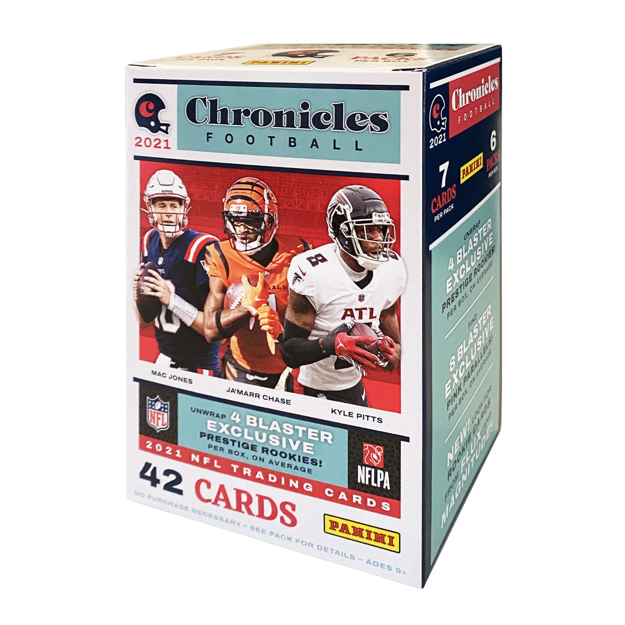 Each Blaster Box comes with six packs of seven (for a total of 42) 2021 Chronicles Football Cards