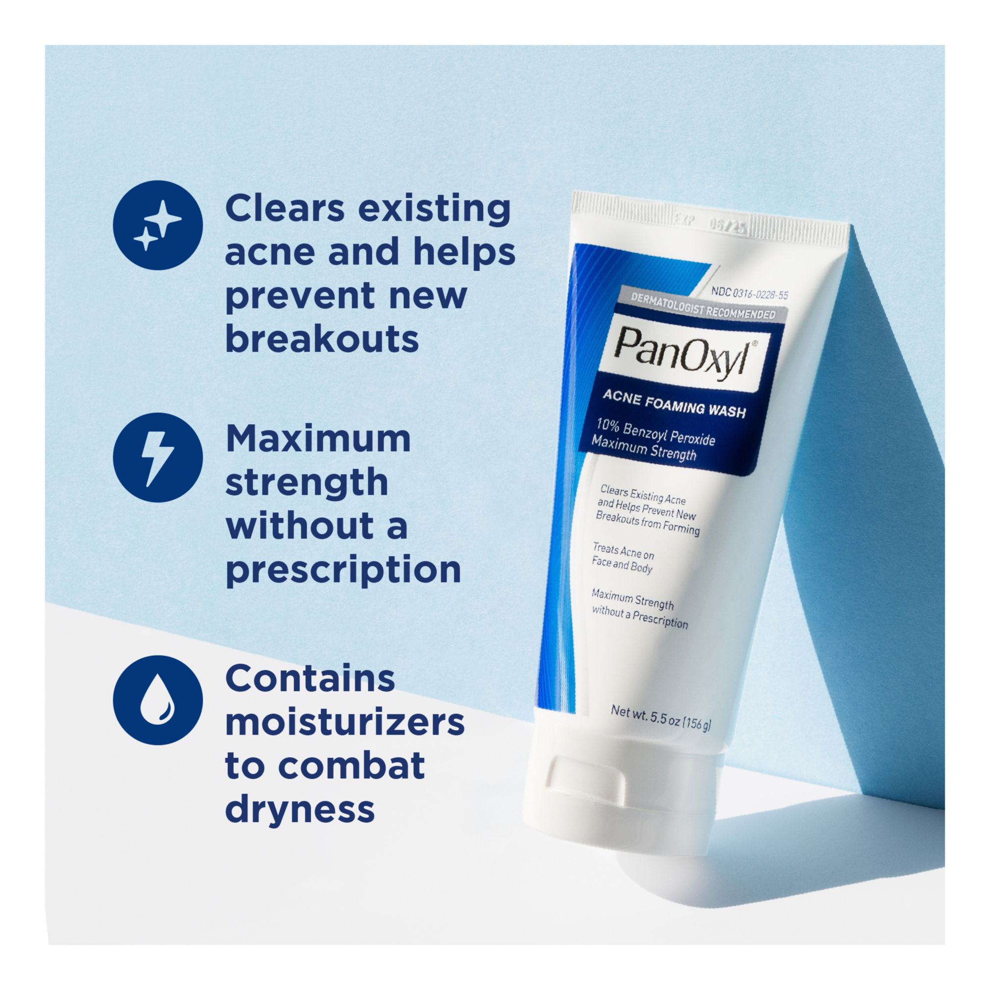 Exclusively at BJ's Maximum Strength – Contains the highest concentration of benzoyl peroxide available without a prescription Starts Working Fast – Anti-bacterial wash kills over 99% of acne-causing bacteria in 15 seconds Breaks the Acne Cycle – Clears existing acne and helps prevent new breakouts from forming Multi-Use Cleanser – Cleans and clears acne on the face, chest and back Daily Acne Maintenance – Contains moisturizers to help combat dryness Includes Panoxyl Acne Foaming Wash Benzoyl Peroxide, 2 pk./5.5 oz.
