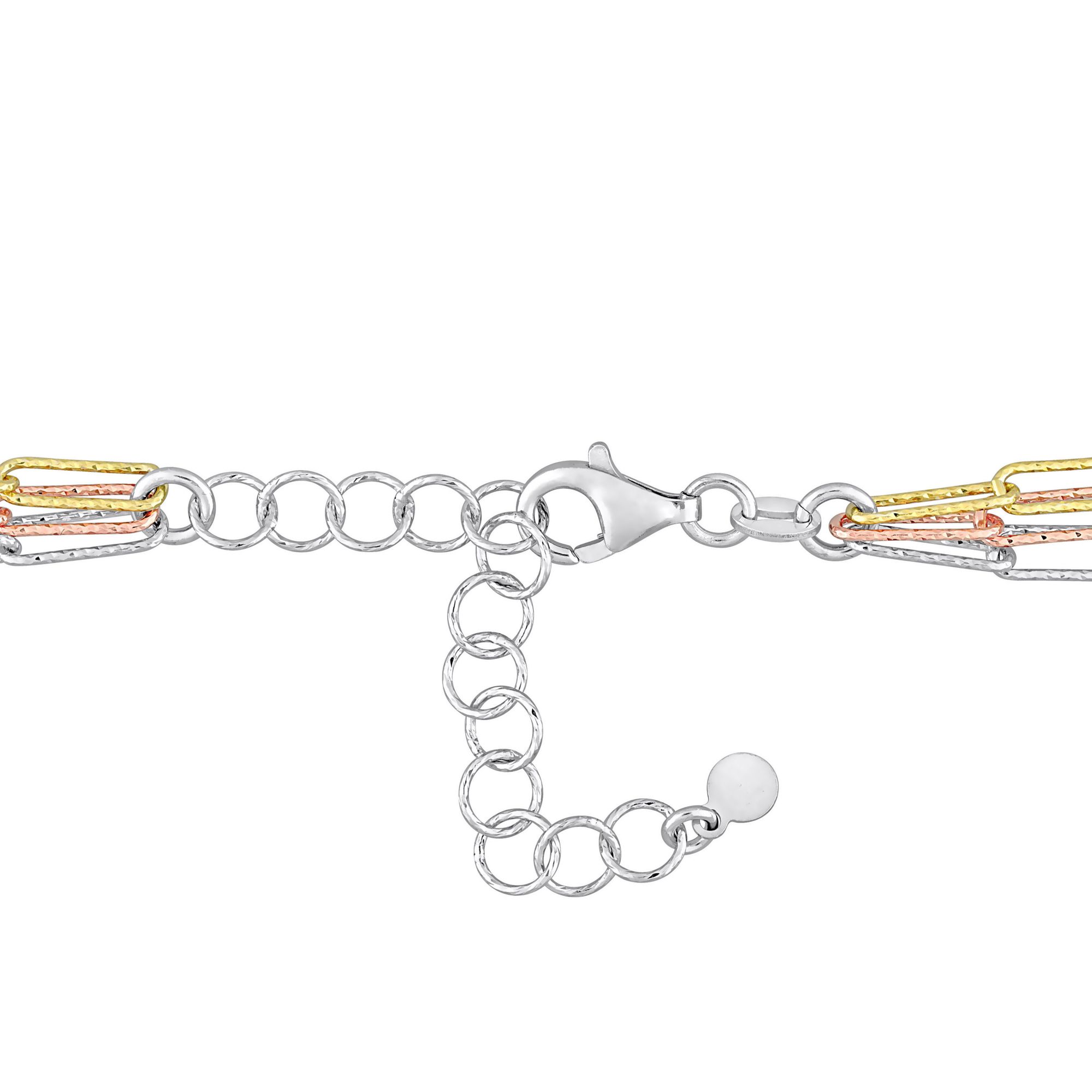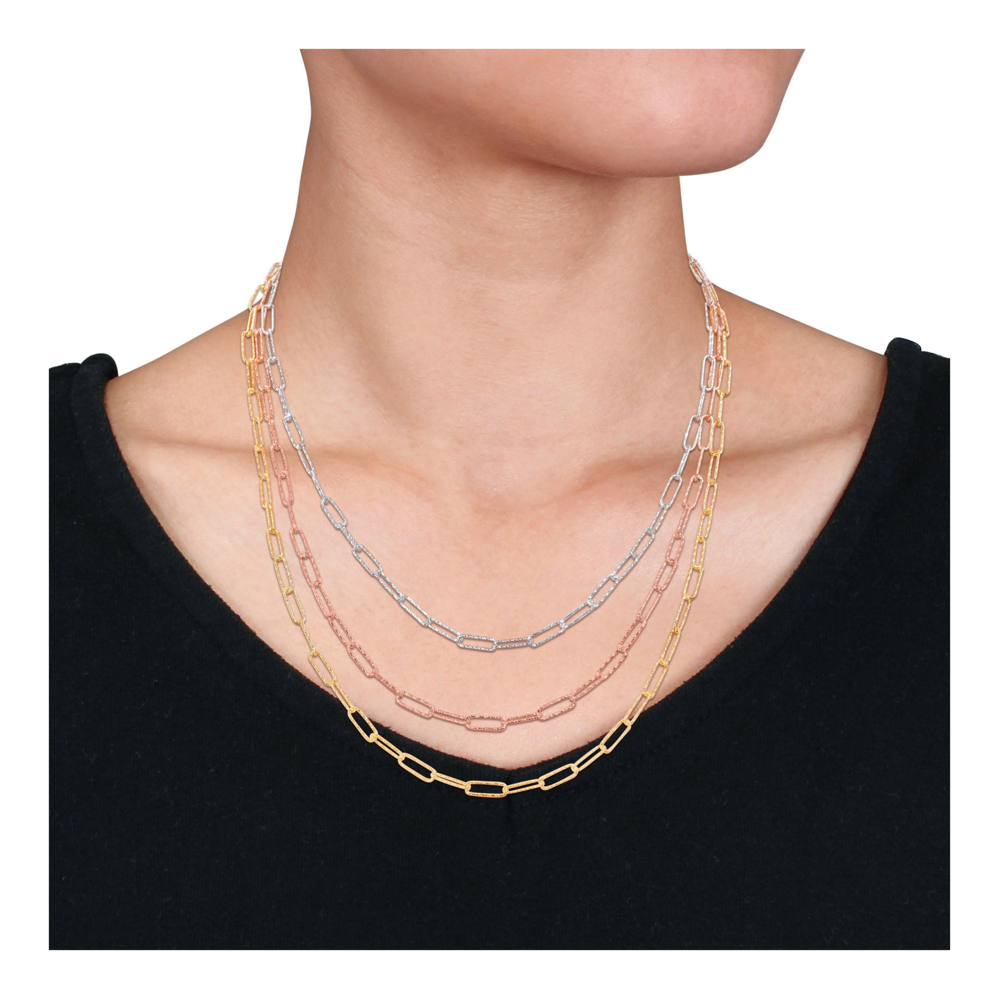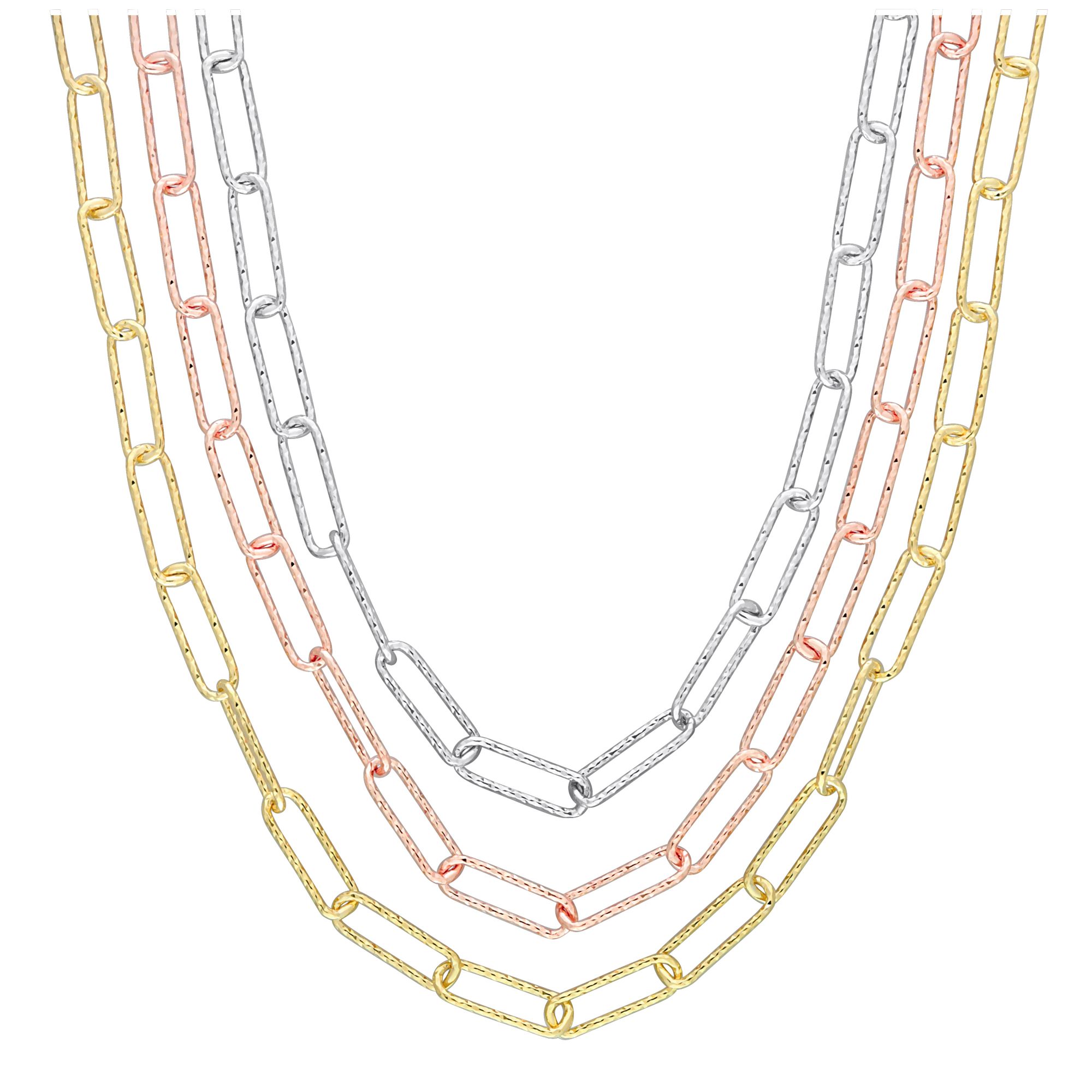Paperclip Multi-Strand Chain Necklace in 18k 3-Tone Gold Plated Silver