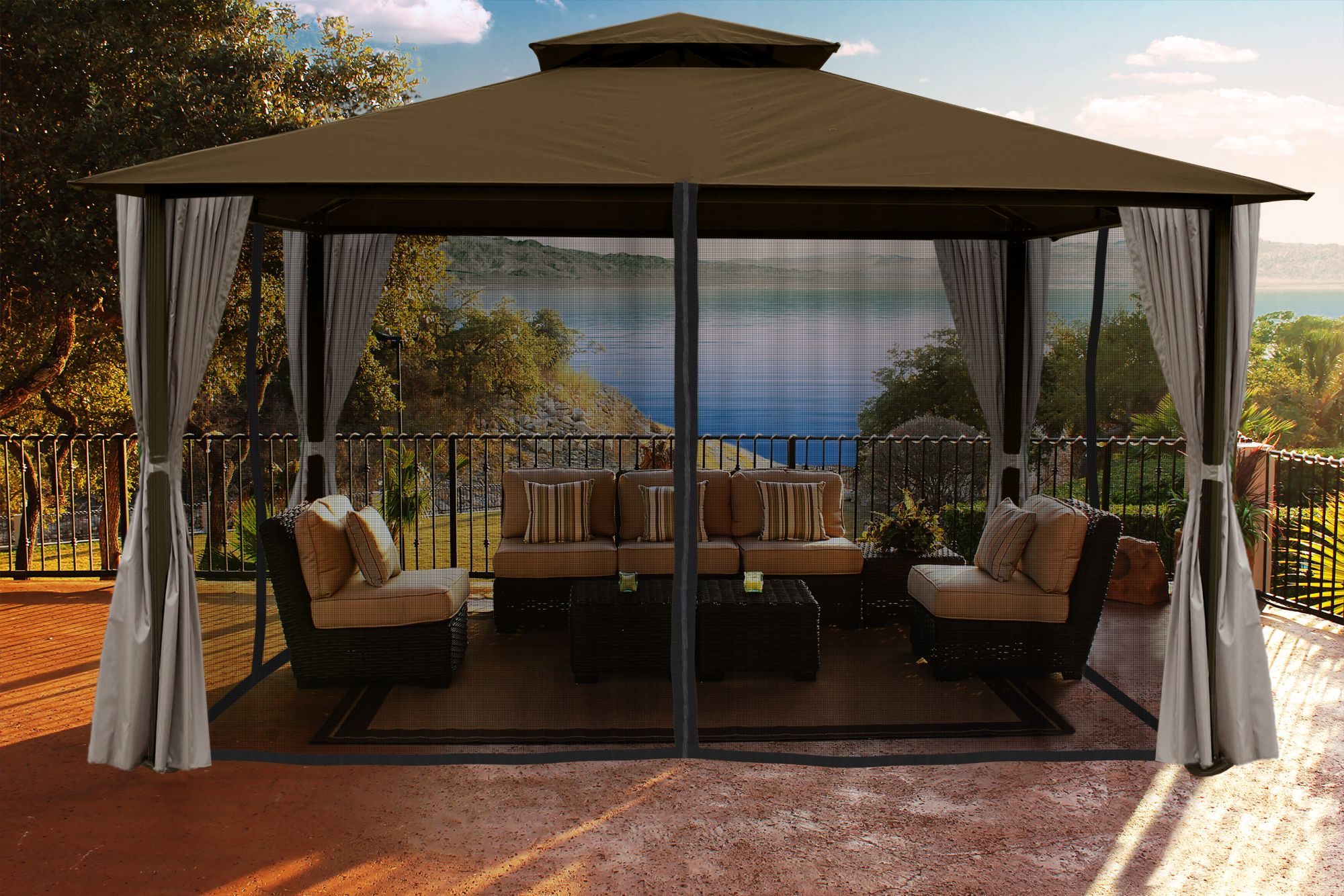 Paragon Outdoor Lizbon 11' x 14' Gazebo with Mosquito Net and Privacy Curtain