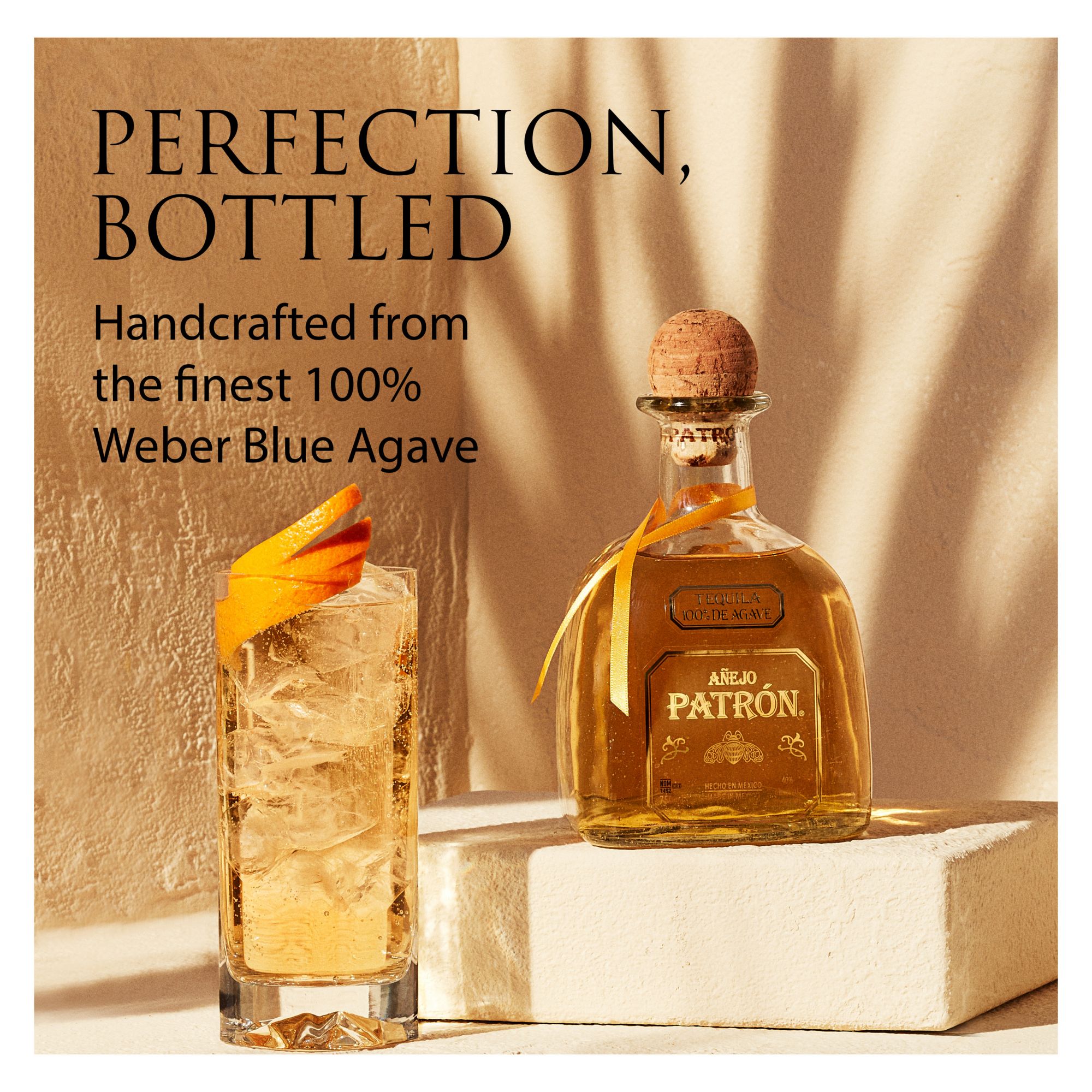 Patron Anejo Tequila is passionately handcrafted from the finest 100% Weber Blue Agave and carefully distilled in Jalisco, Mexico