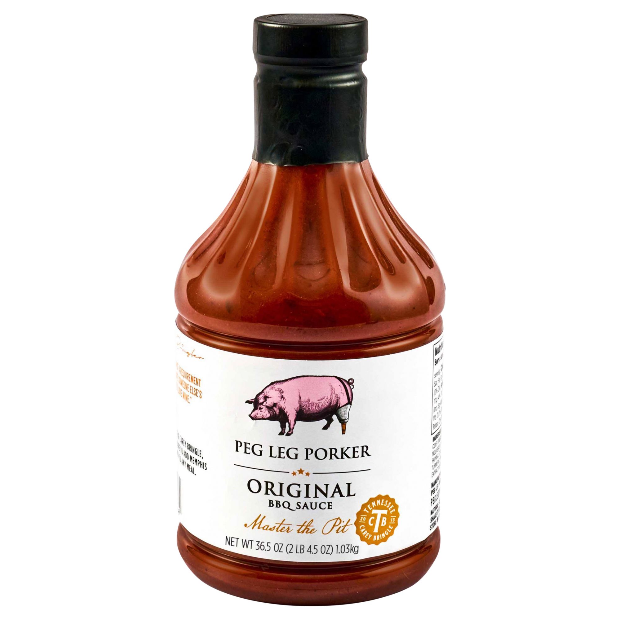 Master the pit with Peg Leg Porker Original BBQ Sauce. This sweet and tangy barbecue sauce is a must for brushing on everything that goes on the grill – from ribs and chicken to pork and steak. Great also for bringing to the table as a sauce for brisket and pulled pork or chicken. This mouthwatering sauce gets its sweetness from honey and molasses and is seasoned with mustard, paprika, chili pepper, garlic, and onion. Use as a wet rub by brushing on ribs, poultry, or salmon to add unforgettable barbecue flavor. Drizzle over nachos and chicken wings or stir into baked beans and chili. Use as a marinade for chicken, pork, or beef before cooking.