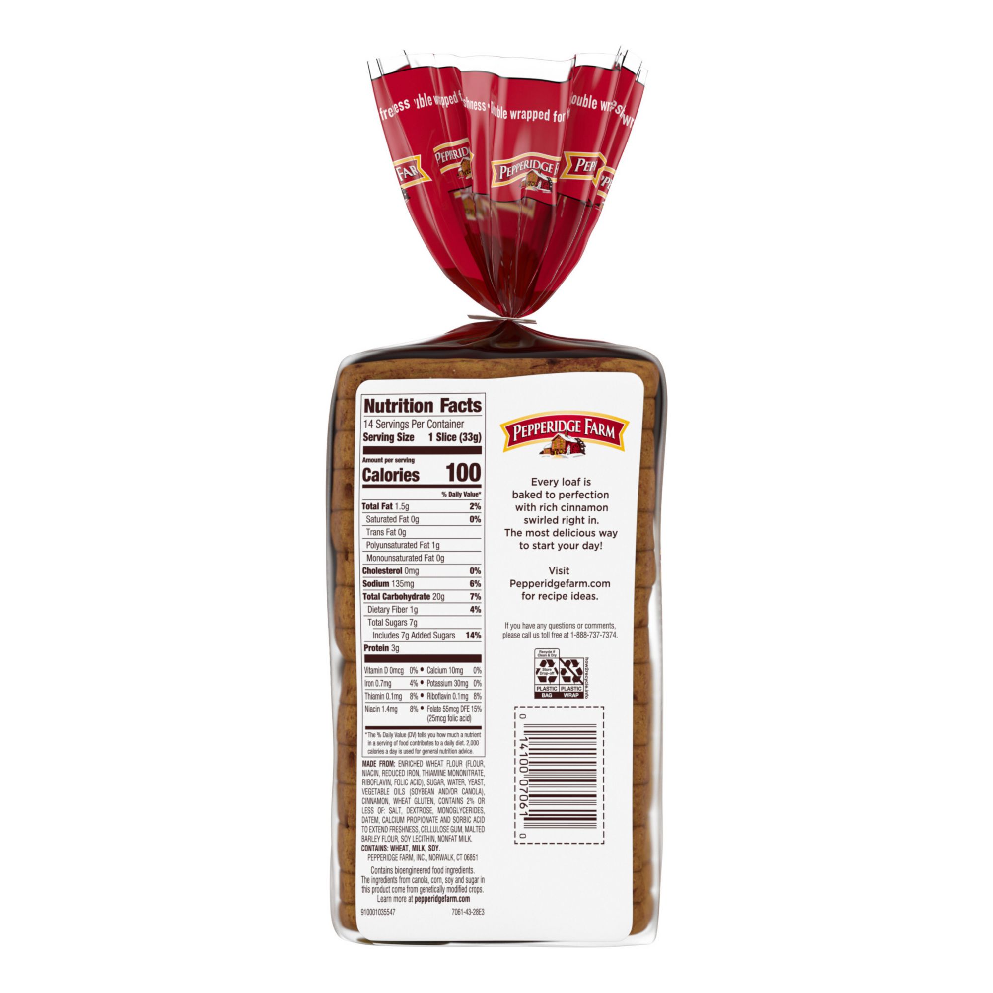 Welcome the day with a slice of Pepperidge Farm Cinnamon Swirl Bread. Every loaf is baked to perfection with rich cinnamon swirled right in. Try it with your favorite spread or French toast recipe. From their oven to your toaster, it's the most delicious way to start your day! For Pepperidge Farm, baking is more than a job. It's a real passion. Each day, their bakers take the time to make every cookie, pastry, cracker, and loaf of bread the best way they know how - by using carefully selected, quality ingredients.