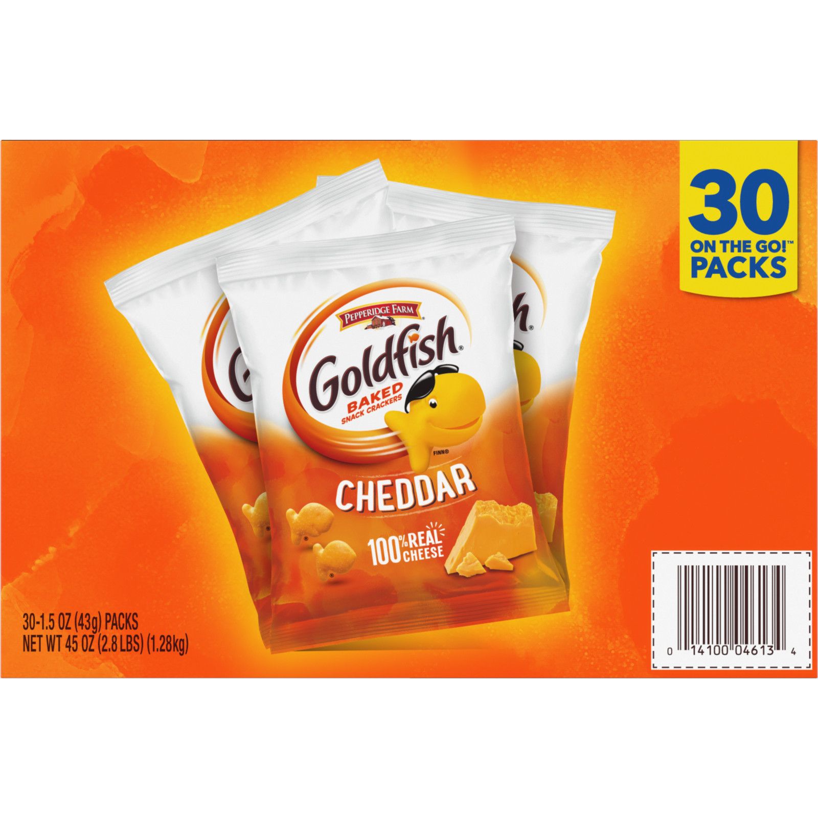 30 snack packs: 30-count multi-pack of Goldfish crackers cheddar snack bags