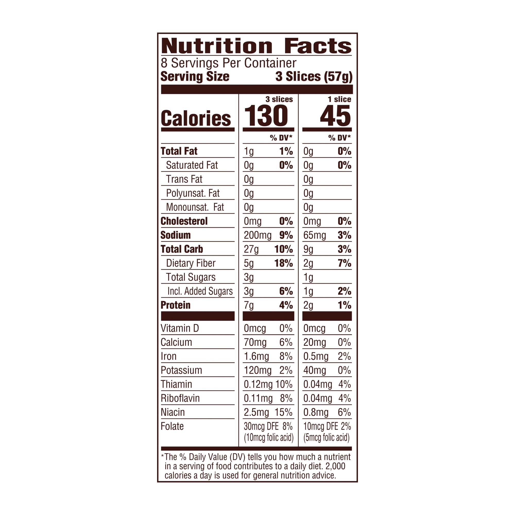 Ingredients Made From: Whole Wheat Flour, Water, Enriched Wheat Flour (Flour, Niacin, Reduced Iron, Thiamine Mononitrate, Riboflavin, Folic Acid), Wheat Gluten, Yeast, Sugar, Oat Fiber, Contains 2% Or Less Of: Wheat Bran, Honey, Molasses, Salt, Nonfat Milk, Monoglycerides, Calcium Propionate And Soribc Acid To Extend Freshness, Wheat Germ, Datem, Brown Sugar, Malted Barley Flour, Sucralose, Soy Lecithin. Contains: Wheat, Milk, Soy.