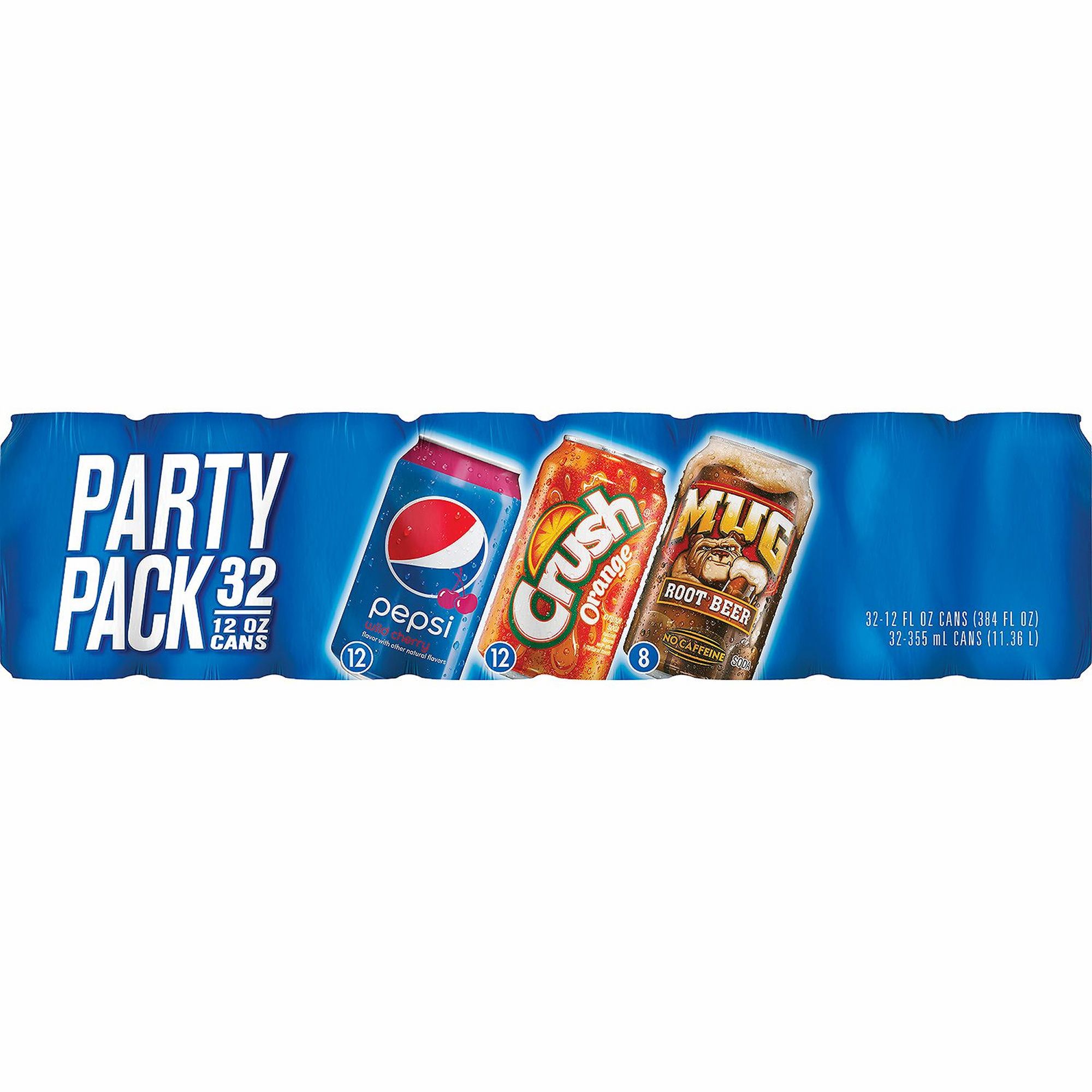Enjoy all your favorite soda flavors with the Pepsi 12 Fl. Oz. Party Pack. It comes with a total of 32 cans, making it easy to prepare for parties and get-togethers. The flavors include Pepsi Wild Cherry, Orange Crush and Mug Root Beer to accommodate everyone's preferences.