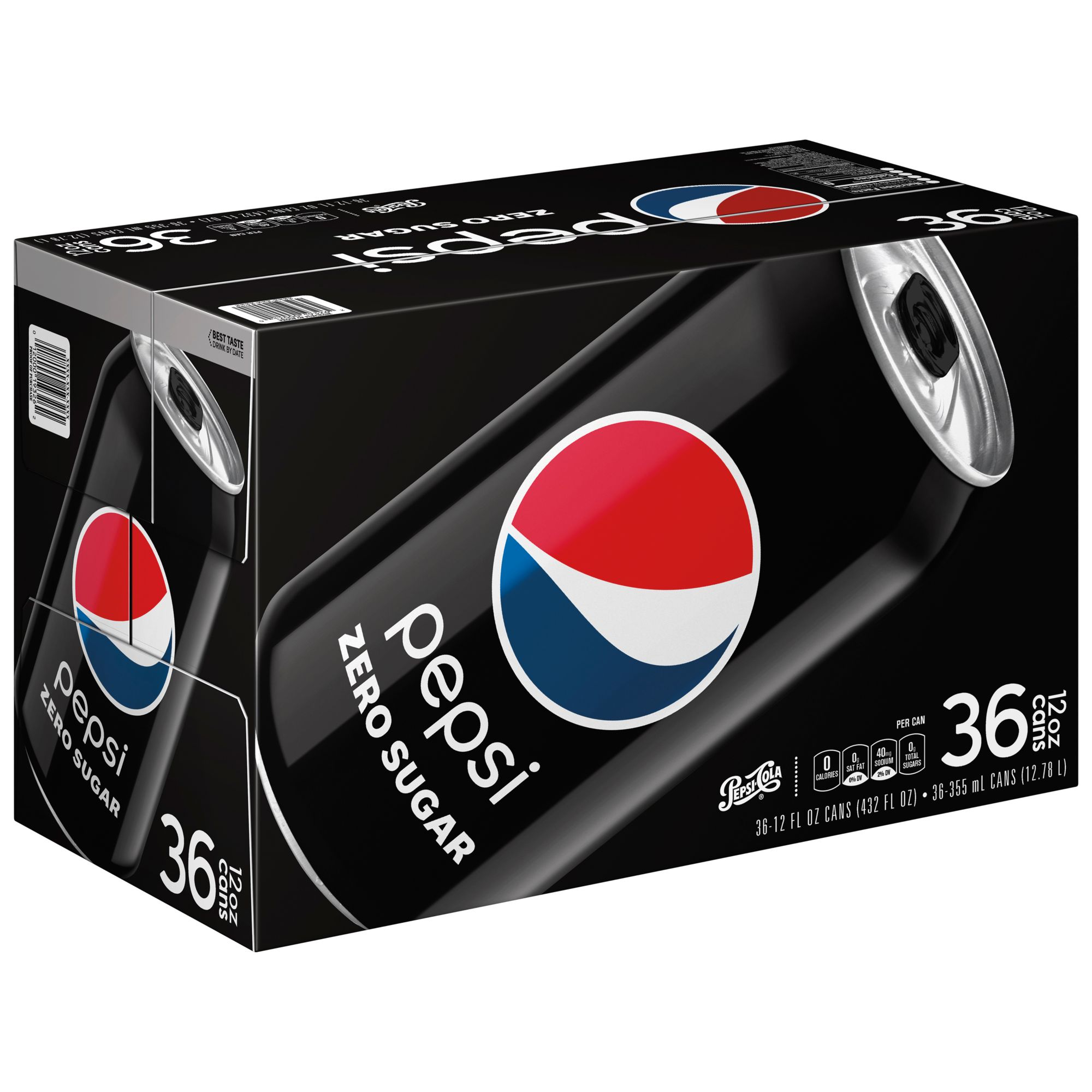 A bold and refreshing zero calorie cola, Pepsi Zero Sugar soda is perfect for parties, meals, and celebrations big and small. Enjoy maximum Pepsi taste with zero sugar. This pack includes thirty-six 12 oz. cans.