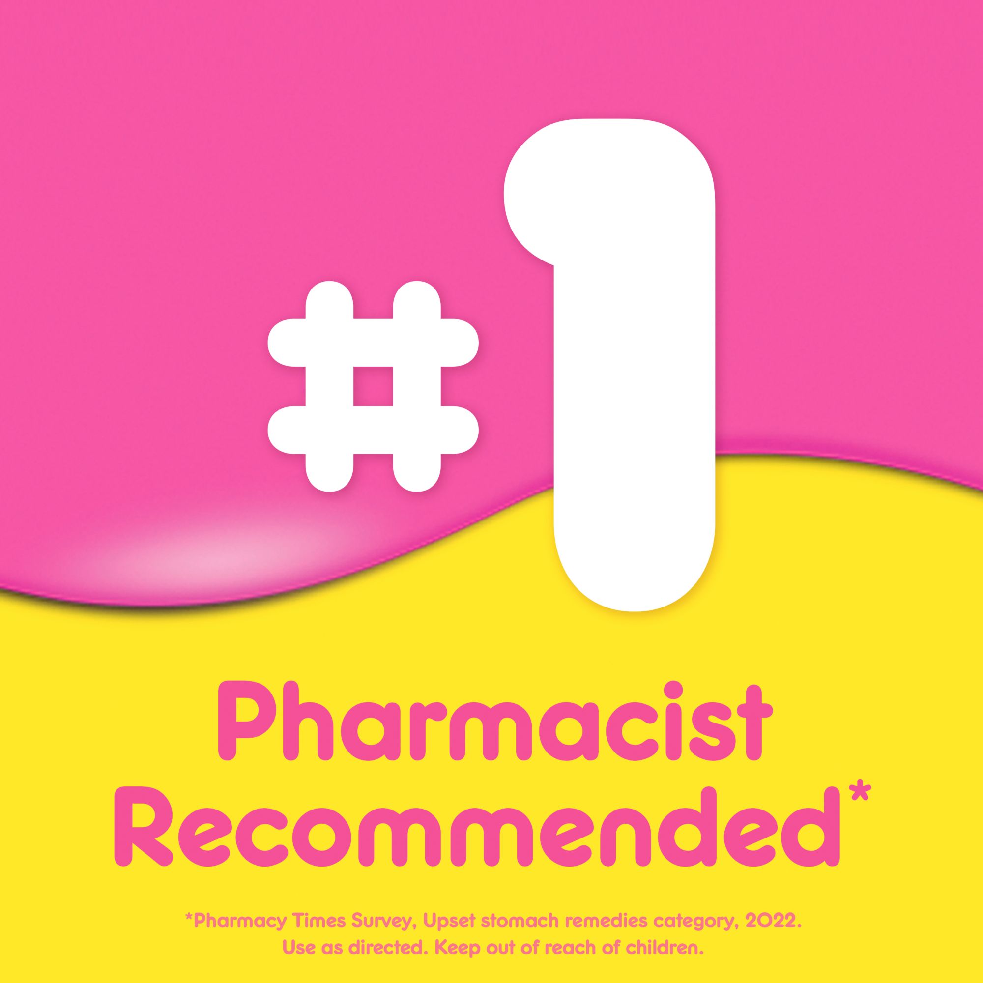 #1 Pharmacist Recommended Brand for Upset Stomachs* based on a Pharmacy Times 2024 Survey-upset stomach remedies category.