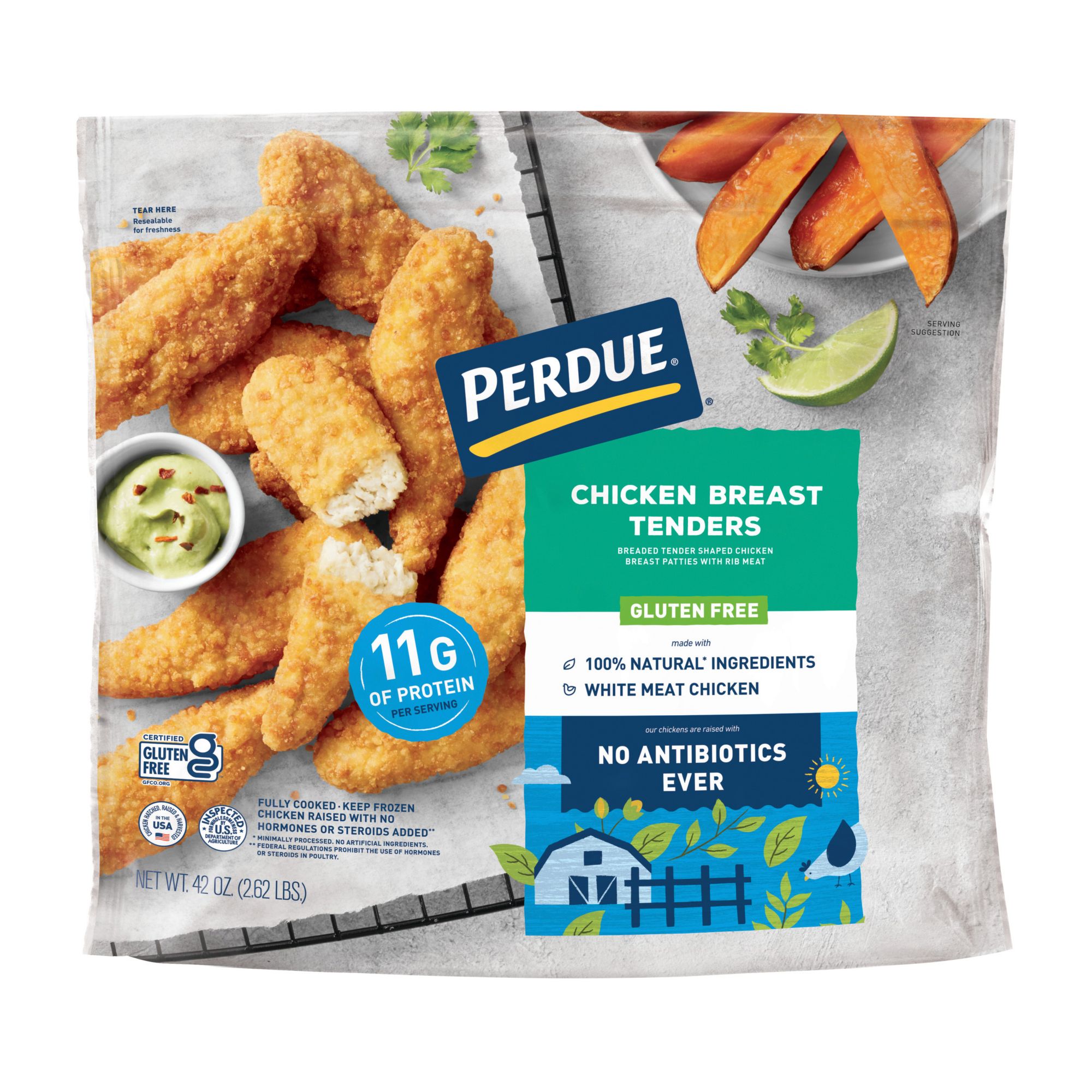 Perdue Gluten Free Chicken Breast Tenders are made with boneless chicken breast meat and coated with a tasty breading! Crisp and juicy right out of the oven, these no antibiotics ever chicken tenders are great for the whole family. Serve with fresh fruit and celery sticks for a gluten-free meal everyone will love! At Perdue, they're hungry for better chicken and that means paying attention to all of the details, no matter how big or small. They believe their practices – like providing healthy feed and a happy environment for their chickens – lead to better tasting chicken. And they think you’ll agree: take one bite and taste the difference that comes from their relentless pursuit of better-tasting chicken.