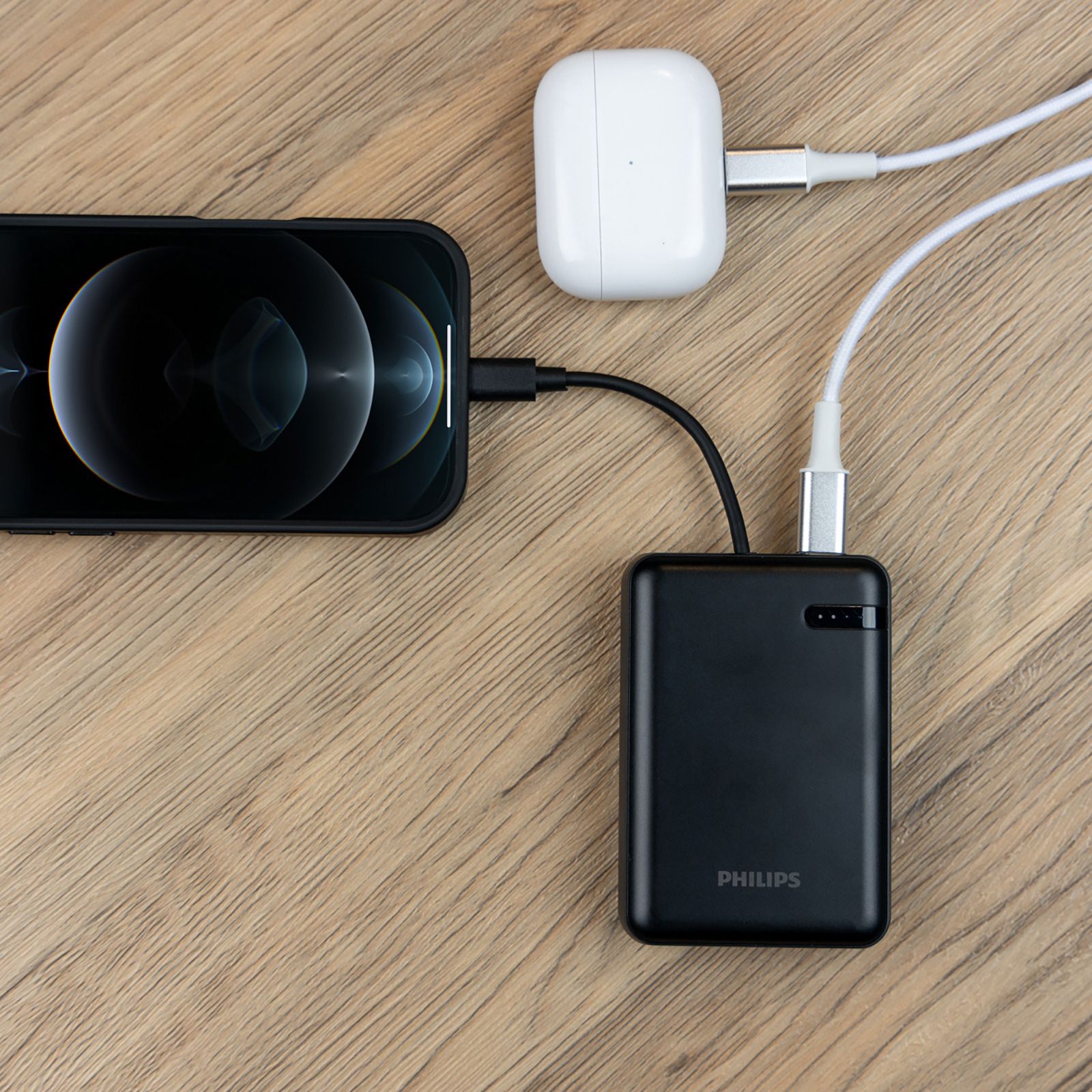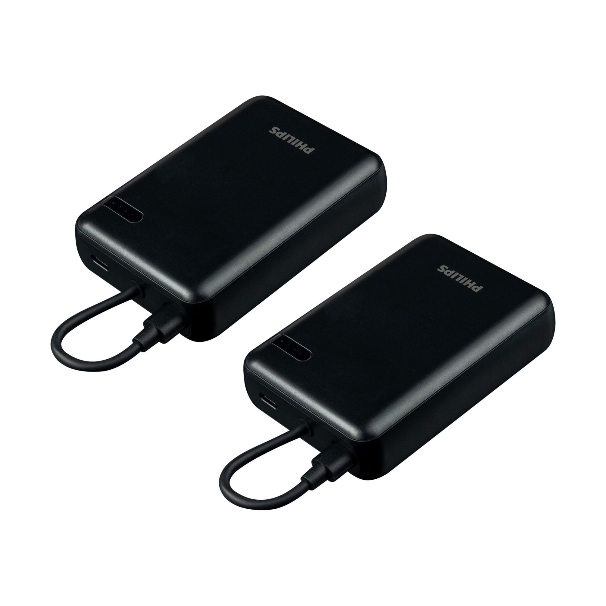 Philips Battery Pack, 1 USB-C, 15W, 1 Tethered USB-C Cable, 10000mAh, Black, 2 pk.
