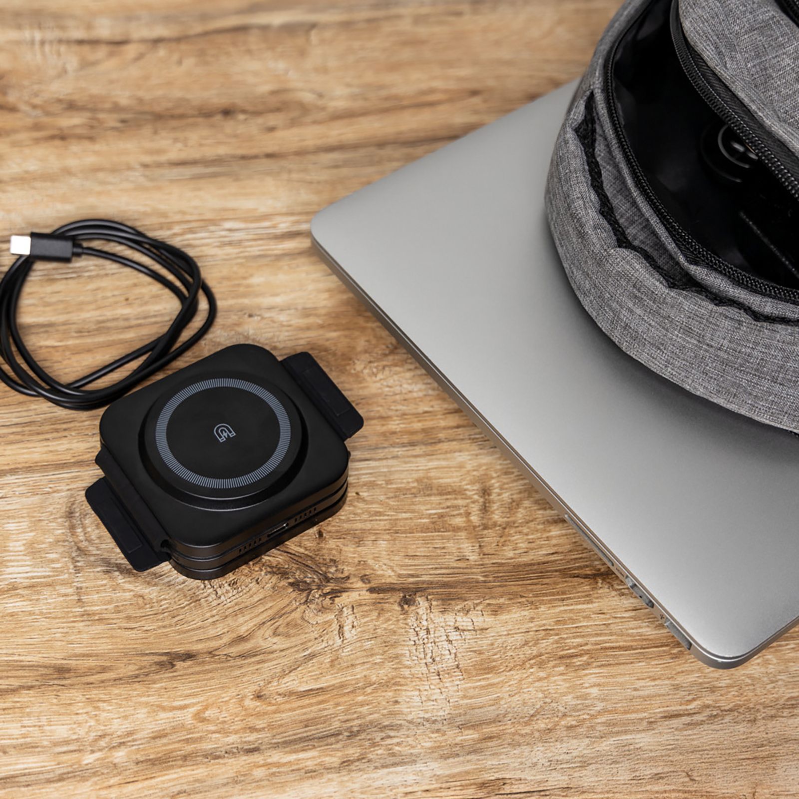 Philips Desktop Charger, 3-in-1 Foldable Wireless Charger, USB-C Input, Magnetic Output, 15W, Black