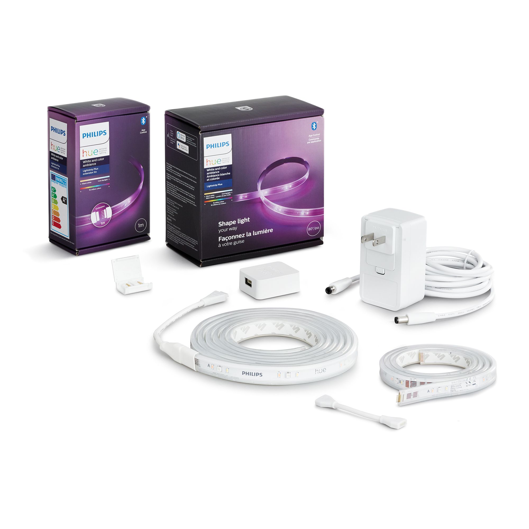 Compatibility Note: these are not compatible with the Non-Bluetooth light strip extension; to extend this strip, please use the Bluetooth extension; expand with any voice or Smart Home assistant Works with Alexa, Google Assistant, Apple HomeKit, Microsoft Cortana, SmartThings, IFTT. Hub required, Alexa device) Hassle-Free Connectivity: these smart lightstrips are Bluetooth-enabled and simple to connect; control up to 50 smart lights on 1 Hue Hub without clogging up your Wi-Fi network How to Use: install the flexible Bluetooth Light Strip under bars, bed frames, or cabinets, with the included adhesive tape; trim it to the perfect size with the included cut marks; connect up to 32' of extension per base kit Beautiful, Optimal Design: the coating around the Light Strip helps to create a single, bright, and vibrant colored light across the entire strip for a more aesthetically pleasing Smart Home Ultimate Entertainment Experience: sync your hue lightstrip plus with gaming, music and movies using your PC via the Hue sync app Includes Bluetooth-enabled Philips hue white and color 6' light strip plus base kit, Bluetooth-enabled 3' white and color light strip plus extension