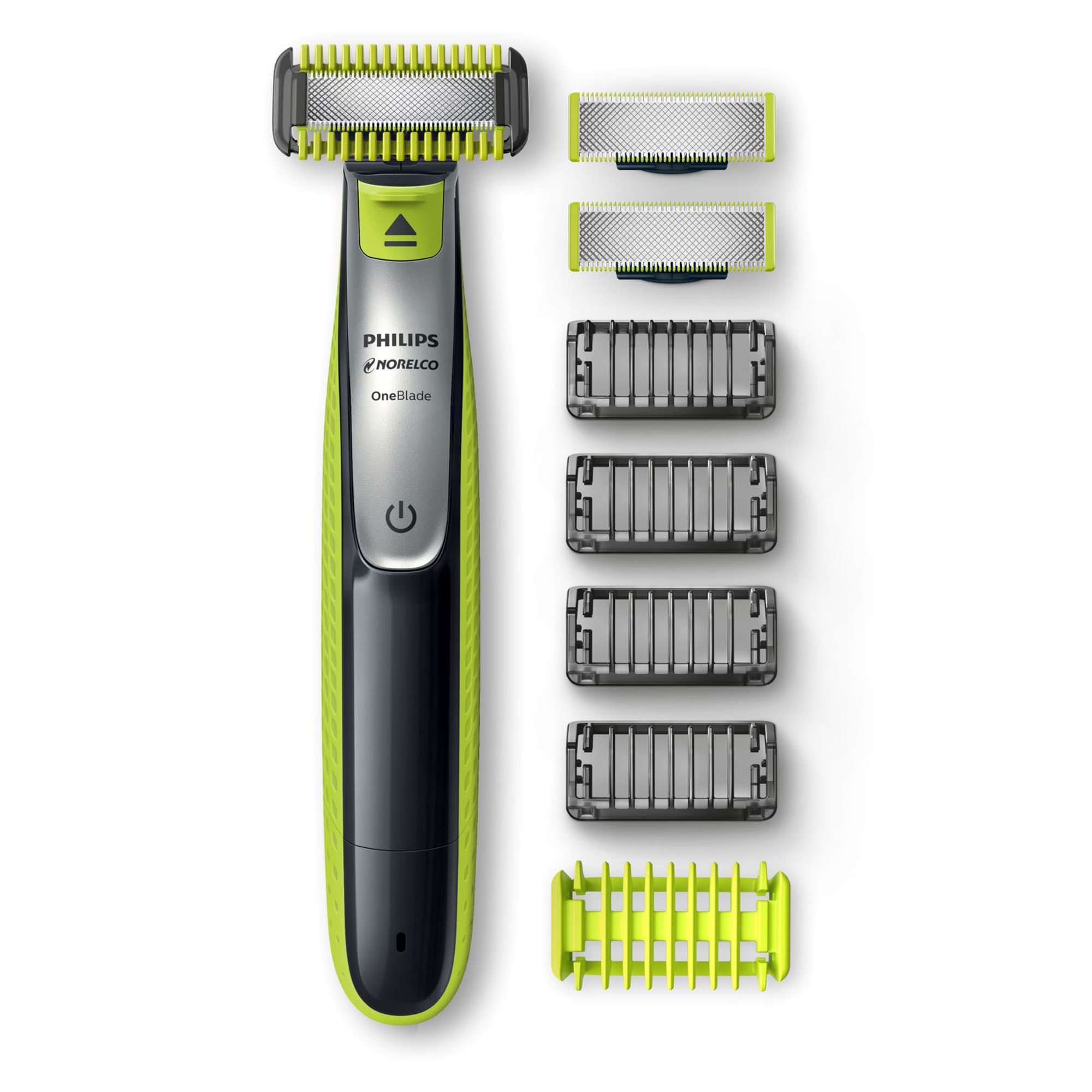 Philips Norelco One Blade Hybrid, edges and shaves any length of hair, even on body. This pack includes a blade for your face, and one for your body to use with the click-on skin guard. This special value pack also includes a bonus replacement blade. The unique One Blade shaving technology integrates a fast moving cutter (200x per second) with a dual protection system to give you an efficient comfortable shave on longer hairs. One Blade does not shave too close, so your skin stays comfortable. Click on one of the trimming combs for face or body for a fast and even trim. The lithium ion battery delivers up to 60 minutes of run time after a 4 hour charge.