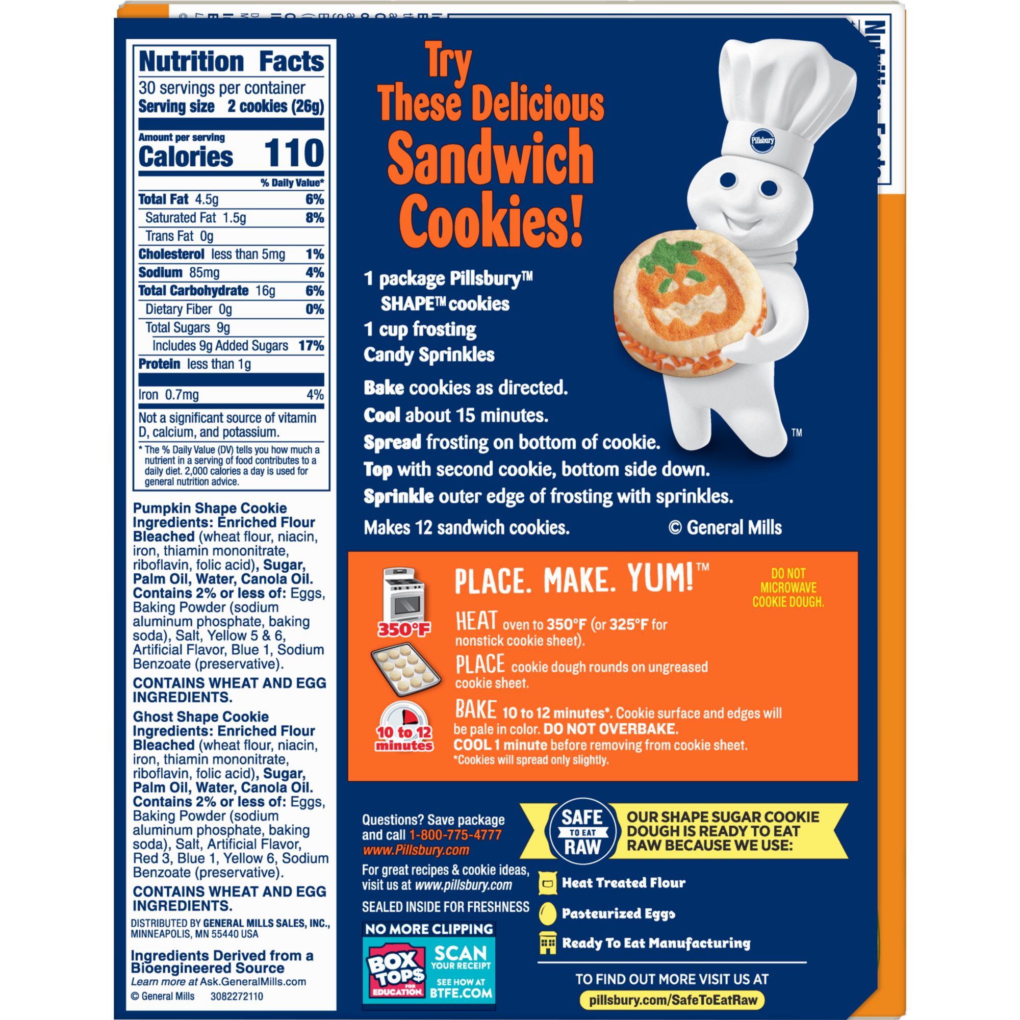 Pillsbury Halloween Shape Sugar Cookie Dough is ready to bake at home for fresh, festive cookies. The pre-sliced cookies are ready out of your oven in minutes. With fun Halloween designs, everyone will love getting in the fall spirit. The package includes 40 cookies with a pumpkin design, and 20 cookies with a ghost design. There's no mixing, no slicing, and no mess. Pillsbury Cookie Dough products are now safe to eat raw so you can enjoy our cookie dough before and after baking. This pack contains three cartons of dough, with 20 cookies per carton.