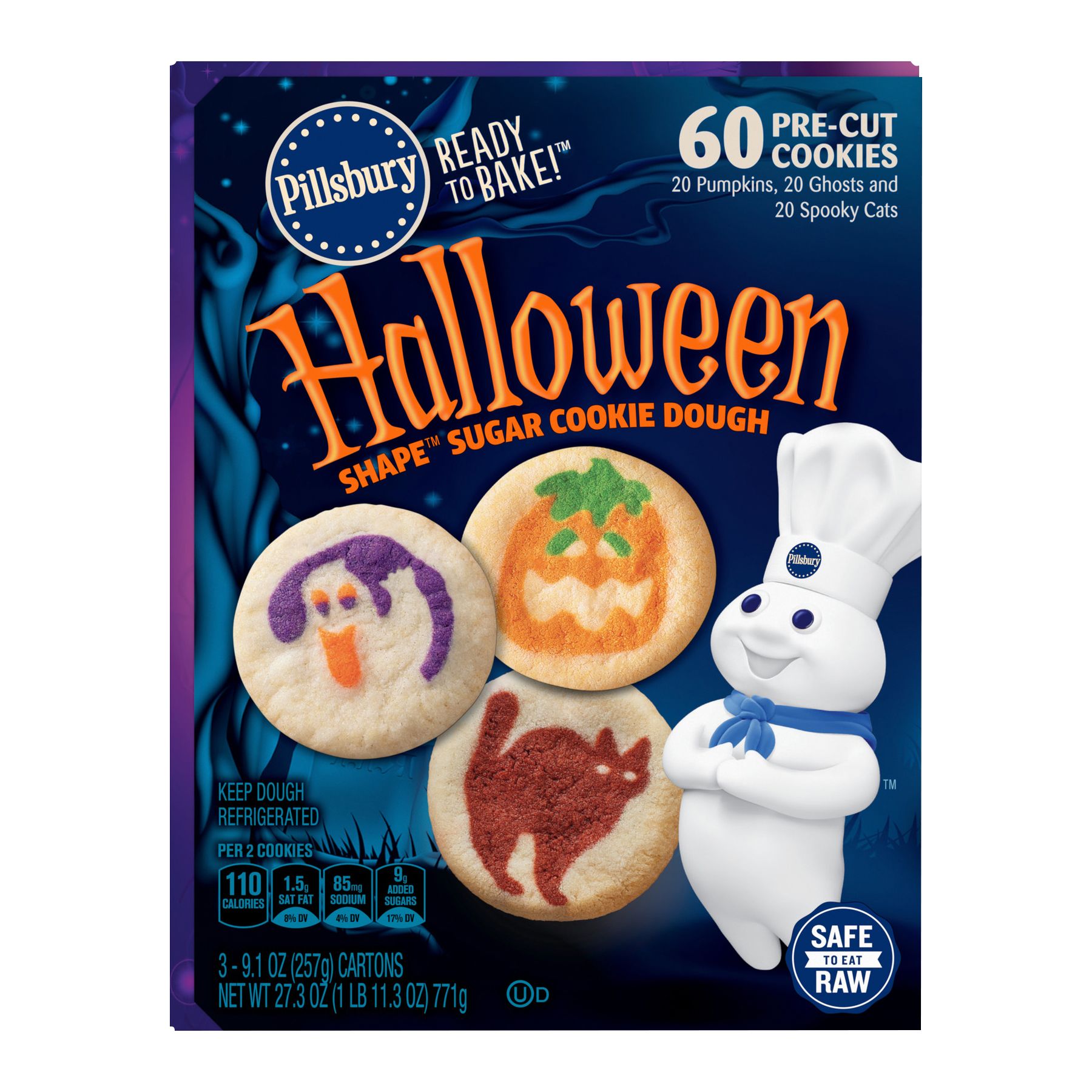 Pillsbury Halloween Shapes Sugar Cookie Pre-Cut Dough, Ready To Bake, Bakes 60 Cookies, 27.3 oz.