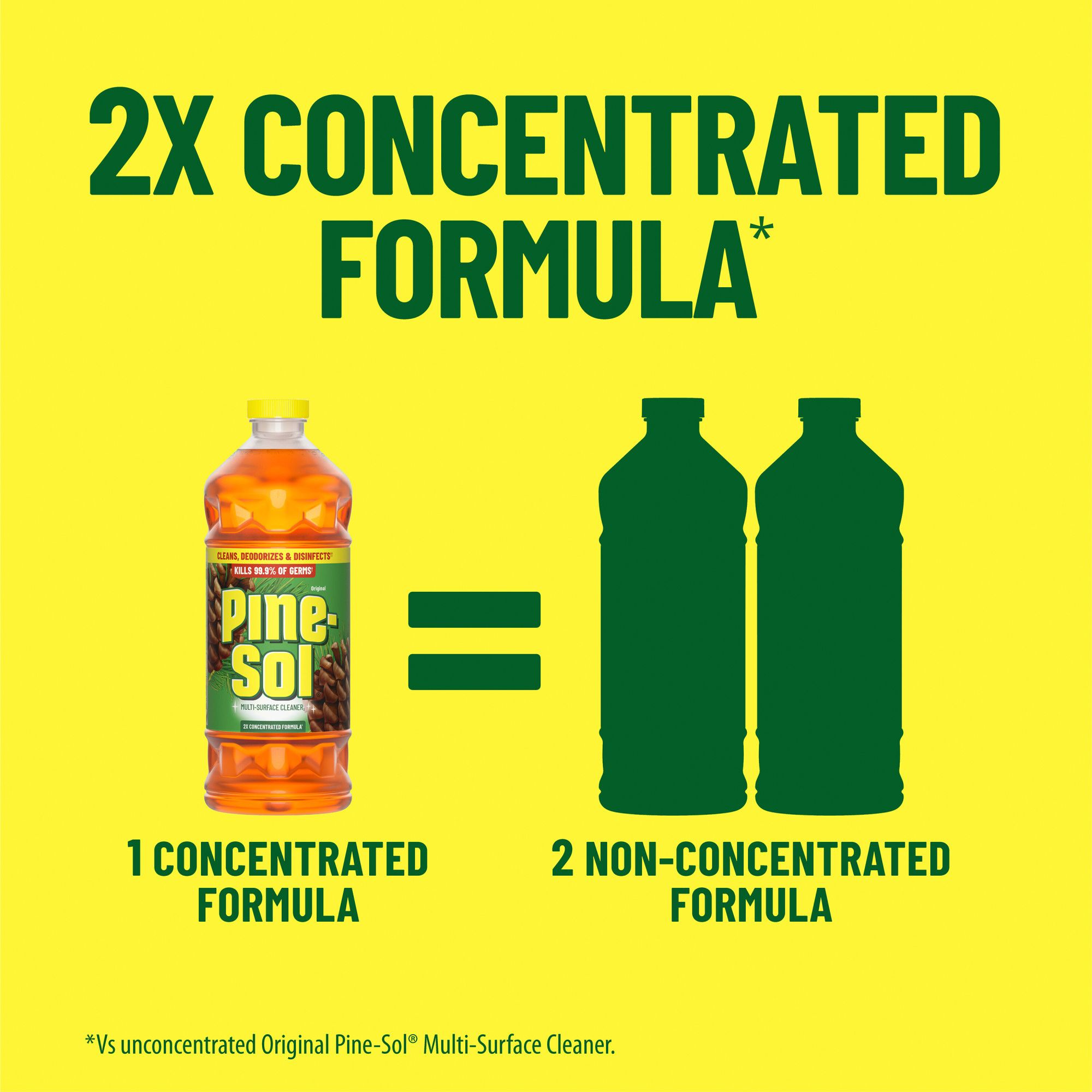 - 2X CONCENTRATED FORMULA (3): Pine-Sol Multi-Surface Cleaner, Original, has a 2X concentrated formula (1) that lasts 2X longer (4) and disinfects full strength or diluted