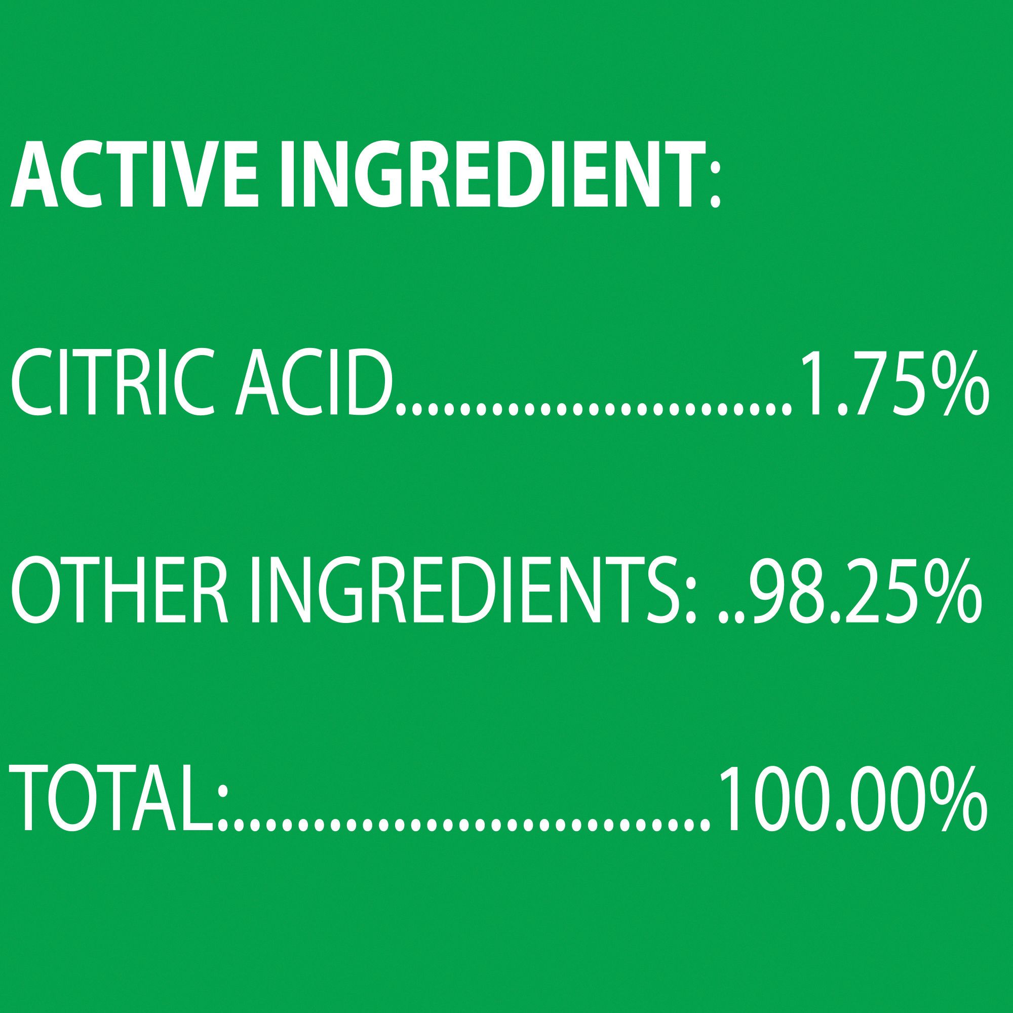 Ingredients: ACTIVE INGREDIENT: CITRIC ACID 1.75%. OTHER INGREDIENTS: 98.25%. TOTAL: 100.00%.