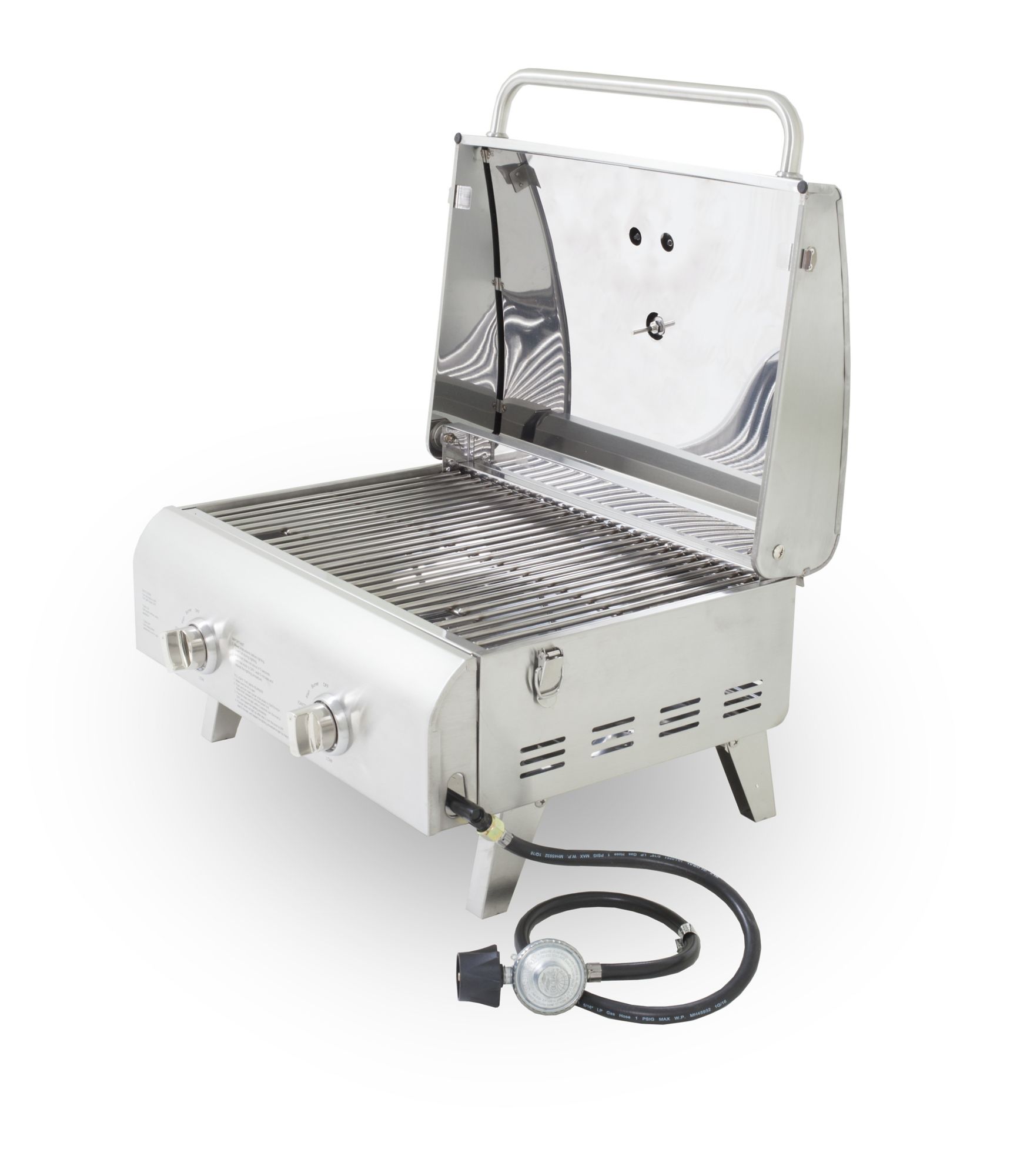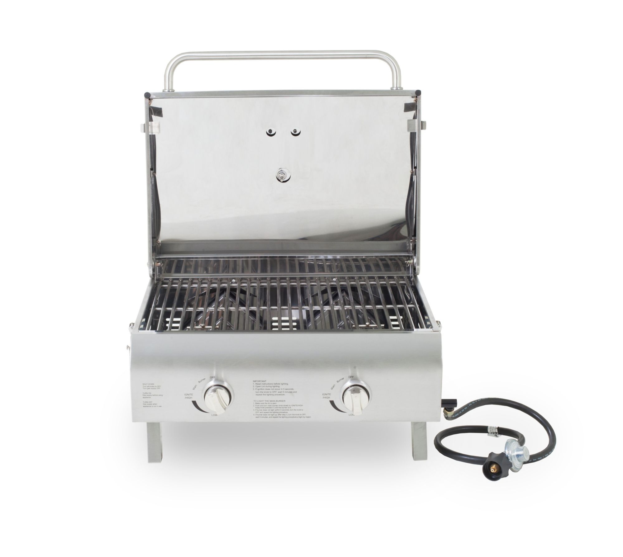 - Two 10,000-BTU stainless steel burners with independent controls