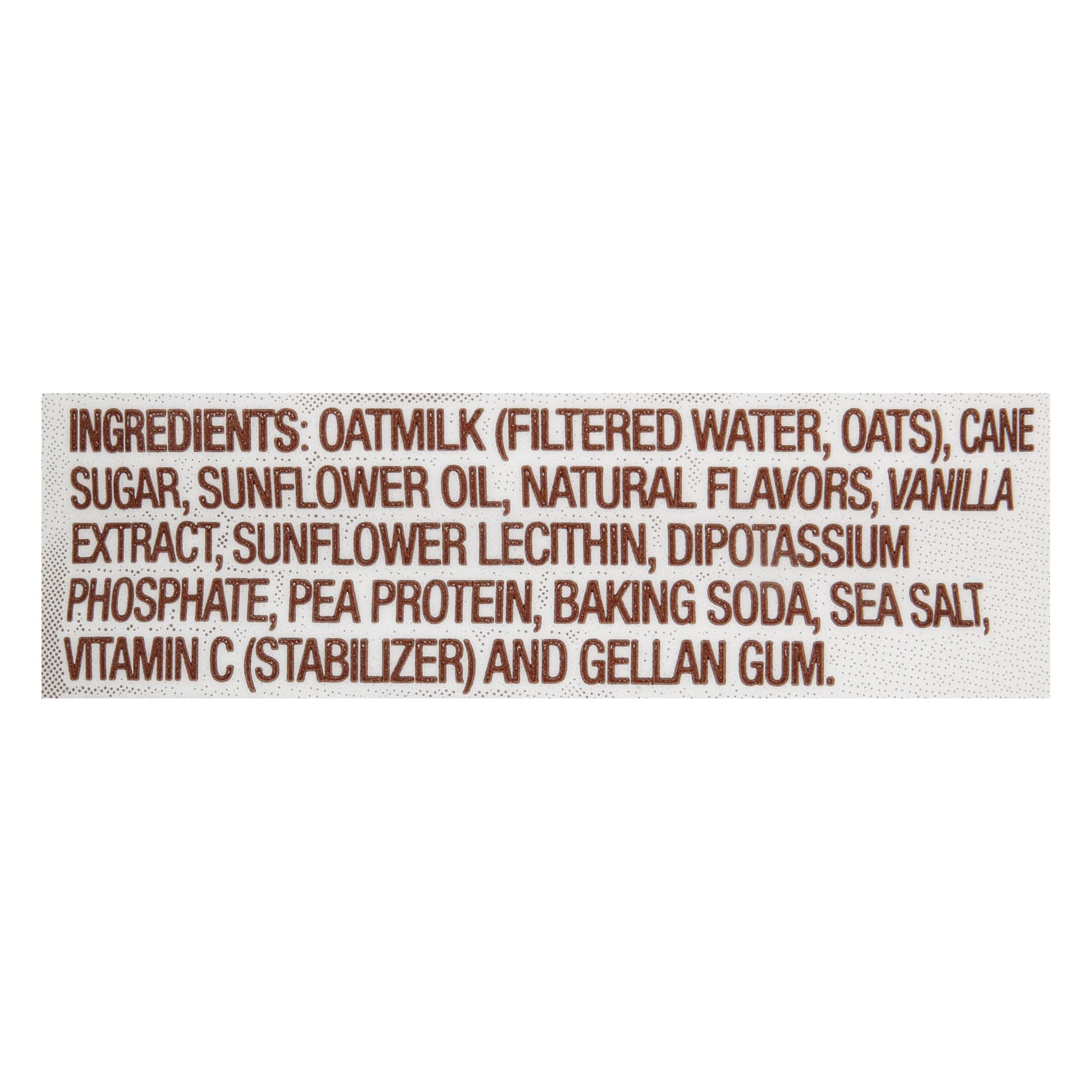 Oatmilk, Cane Sugar, Sunflower Oil, Natural Flavors, Vanilla Extract