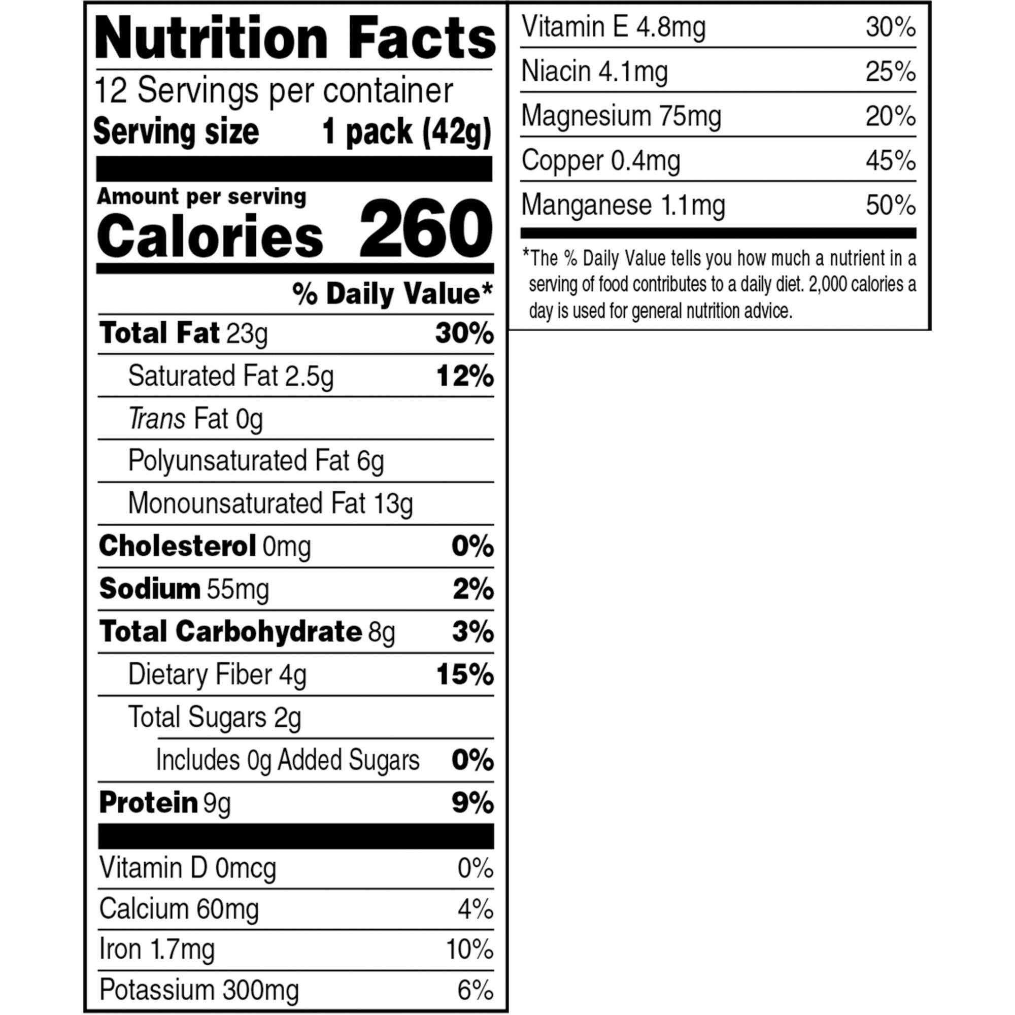 Delicious mix of peanuts, almonds, pistachios, pecans & hazelnuts (filberts) Good source of fiber 12 bags of 1.5 ounces each Perfect for those keeping kosher Cholesterol Free Food; 0g Trans Fat Perfect for those keeping kosher