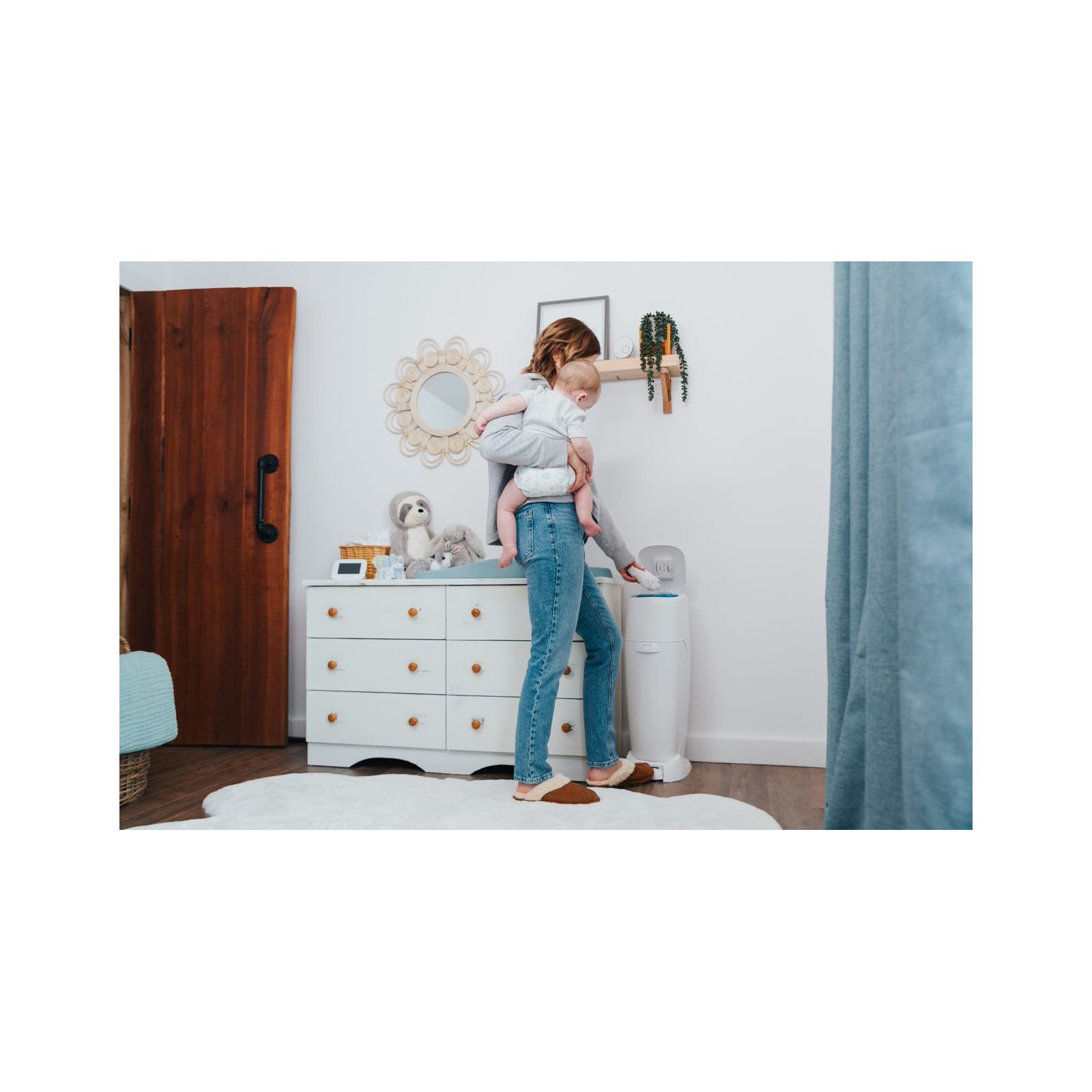 Babies go through 9,600 diapers in 3 years that's a poop ton of diapers (pun intended). You'll need a place to hold all those diapers without having to constantly run to the trash can. Don't look any further than the Diaper Genie Complete Diaper Pail. The only diaper disposal system you'll need for your baby's nursery. Fully assembled with three full-sized refills, the pail is ready to get to work as soon as you take it out of the box. A necessity for your baby’s nursery, the seven-layer refill bag, Double Air Tite Clamps, and activated carbon filter work together as the ultimate odor lock system. Only the Diaper Genie Complete Pail and seven-layer refill contain a built-in odor antimicrobial that inhibits bacteria growth on both the pail & refill. The Diaper Genie Complete Pail offers a simple, effective way to help keep your nursery fresh by locking in strong diaper odors. The innovative design also makes dirty diaper disposal quick and easy and locks in odor, unlike regular, clamp-less pails that rely on an ordinary lid and plastic bag. From the #1 Selling Diaper Pail brand*, the Diaper Genie Complete Pail is all you need for a fresh, clean, and sweet-smelling nursery. *Based on Nielsen retail scan data 52 weeks ending 4/30/21 for the Diaper Disposal category.