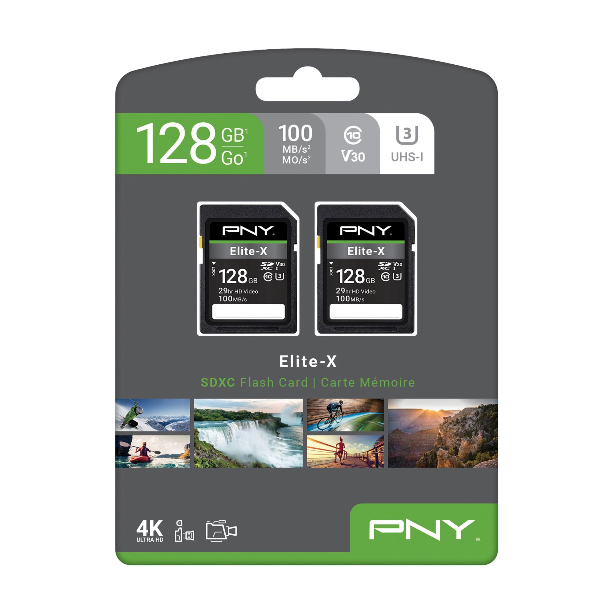 Class 10, U3, V30 speed rating, with read speeds up to 100MB/s Class 10, U3, V30 rating delivers speed and performance for burst mode HD photography and 4K Ultra HD videography Ideal for photography and videography enthusiasts, and recording and transferring content between devices and computer Compatible with point & shoot cameras, DSLR cameras, standard & advanced HD-enabled video cameras, and more Magnet Proof, Shock Proof, Temperature Proof, Waterproof 2 SD Flash Memory Cards