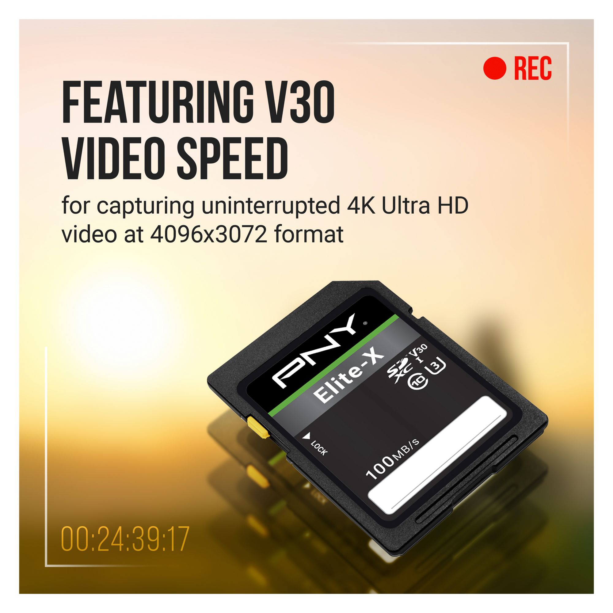 The PNY Elite-X Class 10 U3 V30 SD Flash Memory Cards are the perfect solution for photography and videography enthusiasts. The Elite-X SD Flash Memory Cards provide ample storage for an array of digital content, including HD photos, 4K videos, and more. These SD cards are rated Class 10, U3, and V30 with read speeds of 100MB/s, guaranteeing that users can quickly and easily transfer content between devices. The U3 technology and V30 video speed make these cards ideal for burst mode HD Photography and 4K Ultra HD Videography. The V30 video speed class optimizes these cards for 4K Ultra HD Video at 4096x3072 format, allowing users to capture high-quality content on their point-and-shoot camera, DSLR camera, and standard & advanced HD-enabled video camera. The Elite-X Class 10 U3 V30 SD Flash Memory Cards are ideal for capturing, transferring, and sharing digital content on the go.