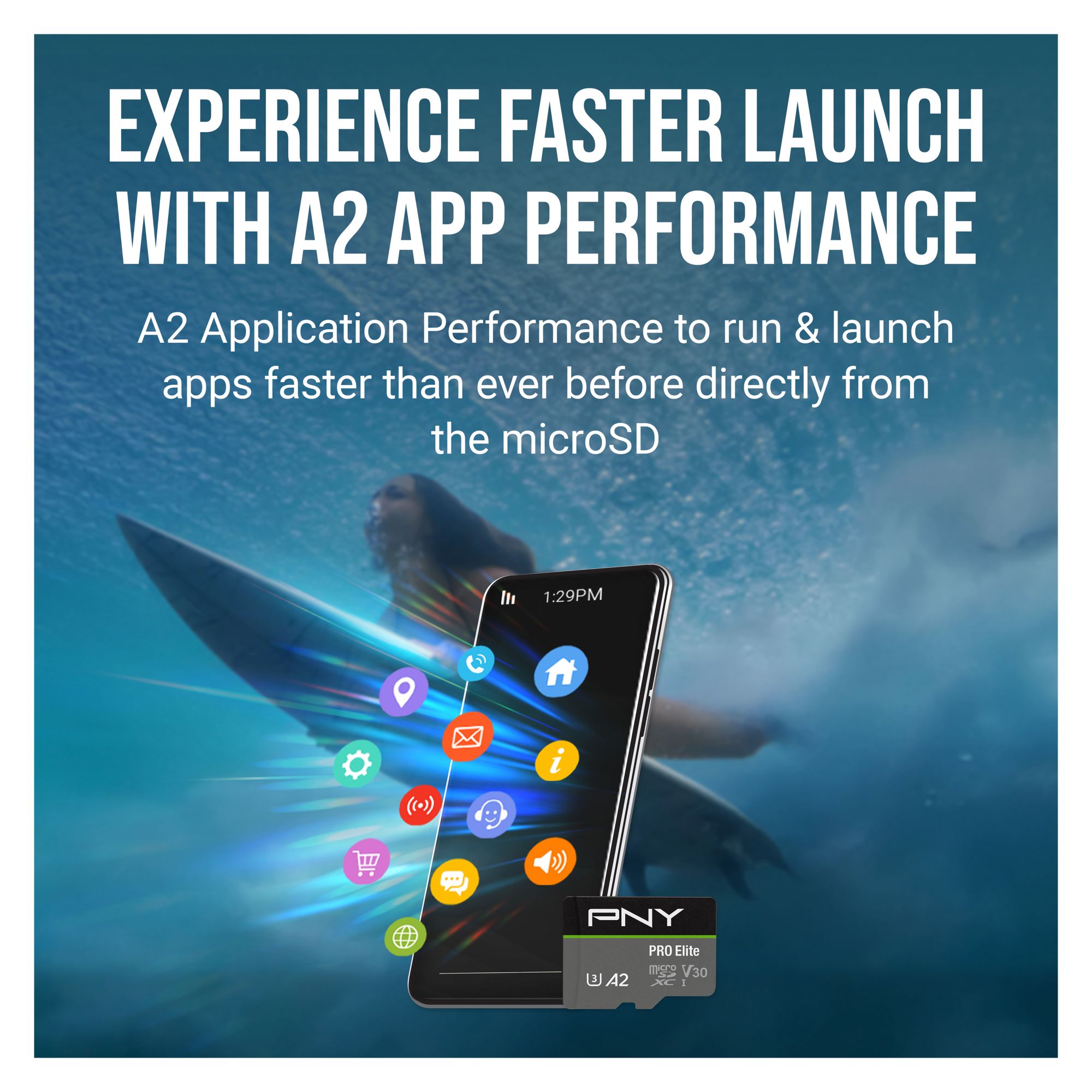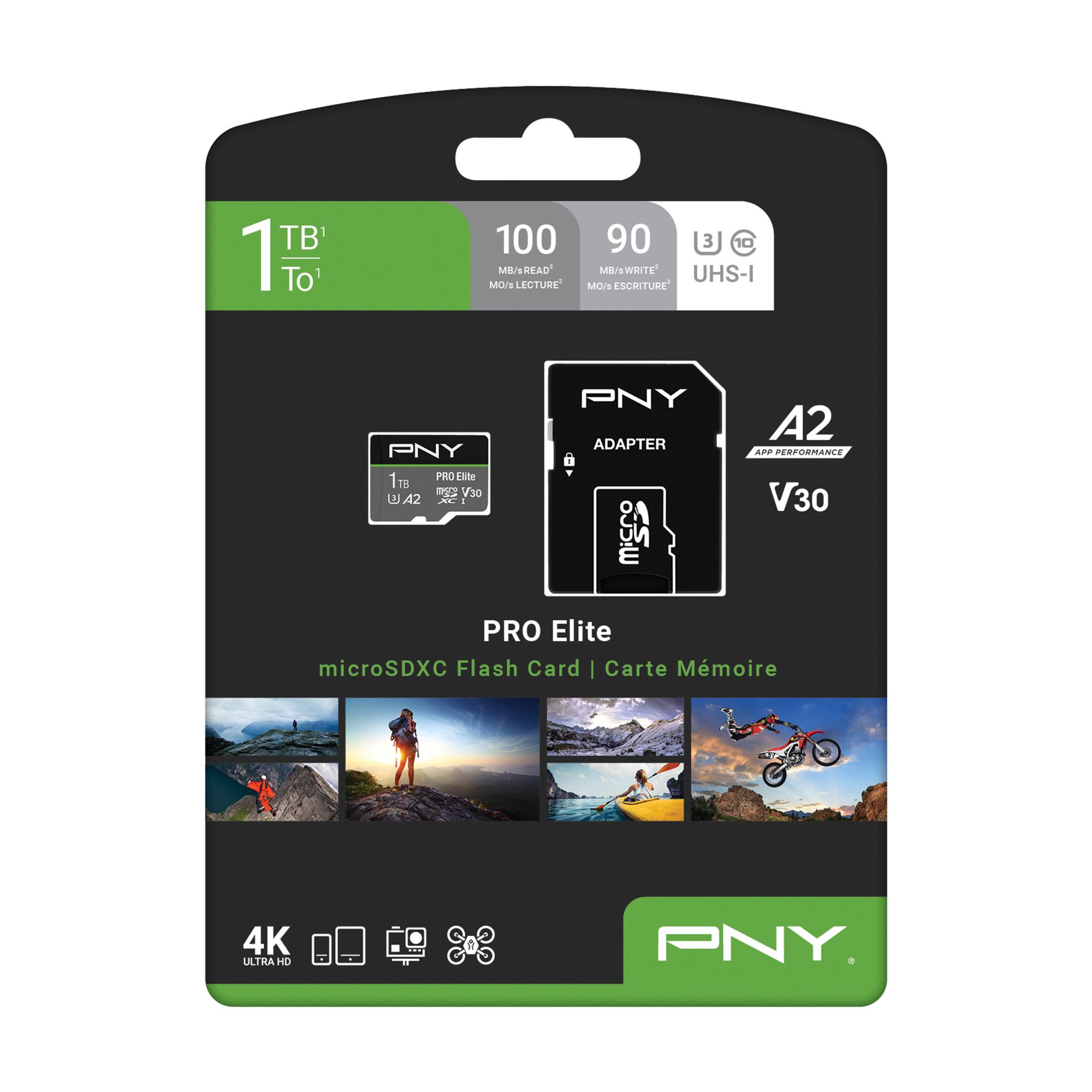 PNY PRO Elite Class 10 U3 V30 microSD Cards offer peak performance for smartphones, tablets, drones, action cameras, surveillance cameras, gaming consoles, and more. With a read speed of up to 100MB/s and a write speed of up to 90MB/s, users can quickly capture and share high-resolution content. U3 technology is perfect for 4K Ultra HD videography and HD photography, making these cards the perfect solution by which to capture stunning 4K video, HD photos, music, apps, and more. What’s more, the PRO Elite microSD Flash Memory Cards feature V30 Video Speed Class, ideal for 4K Ultra HD video at 4096x3072 format, allowing users to capture high-quality content on today's 4K Ultra-HD devices. Additionally, these cards are rated A2 which optimizes the PRO Elite microSD for app performance allowing users to run apps directly from the microSD card, delivering faster app launch and performance than ever before. With PNY's PRO Elite Class 10 U3 V30 microSD cards, users can experience memories that feel as real as the day they captured them.
